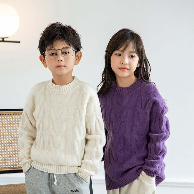 丸襟児童100純ウールニットは、麻花の中の子供のカシミヤを厚くして、男女の子供のセーターを着ている