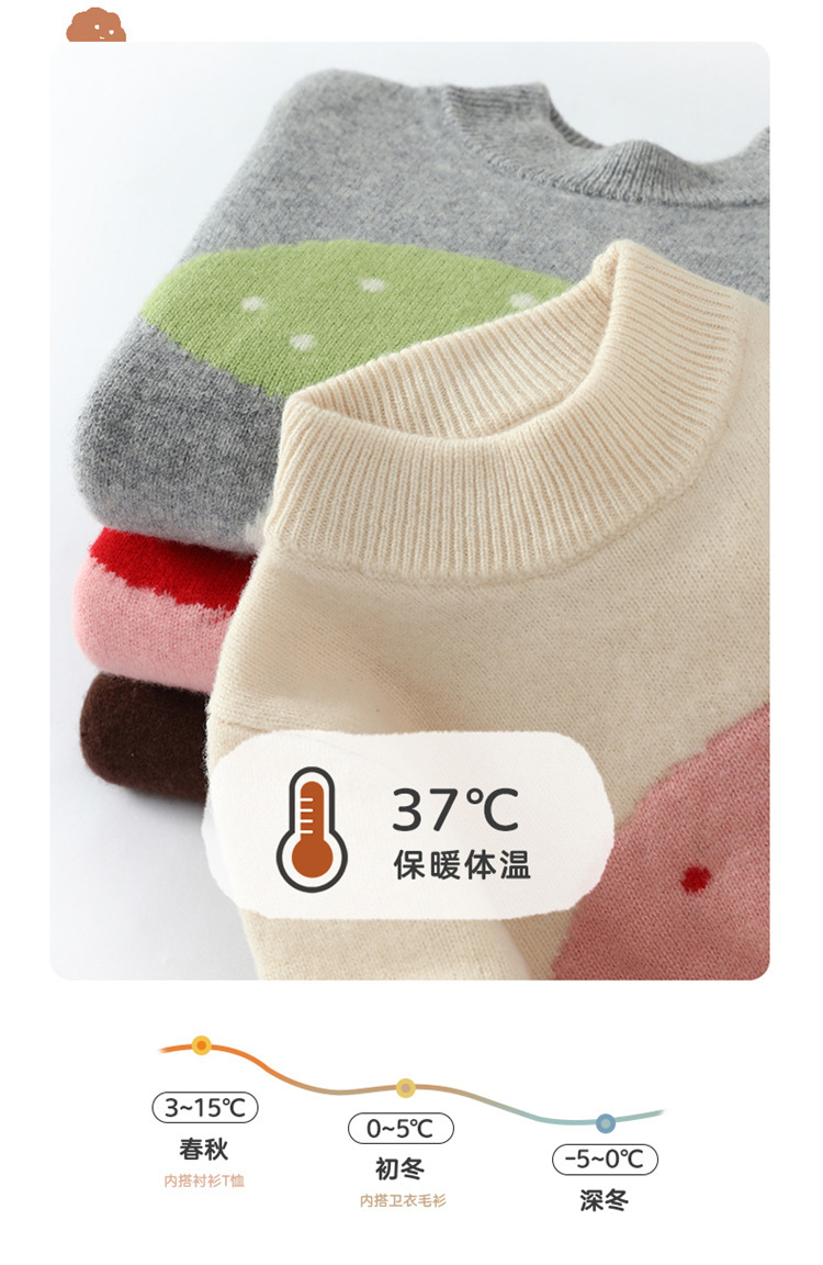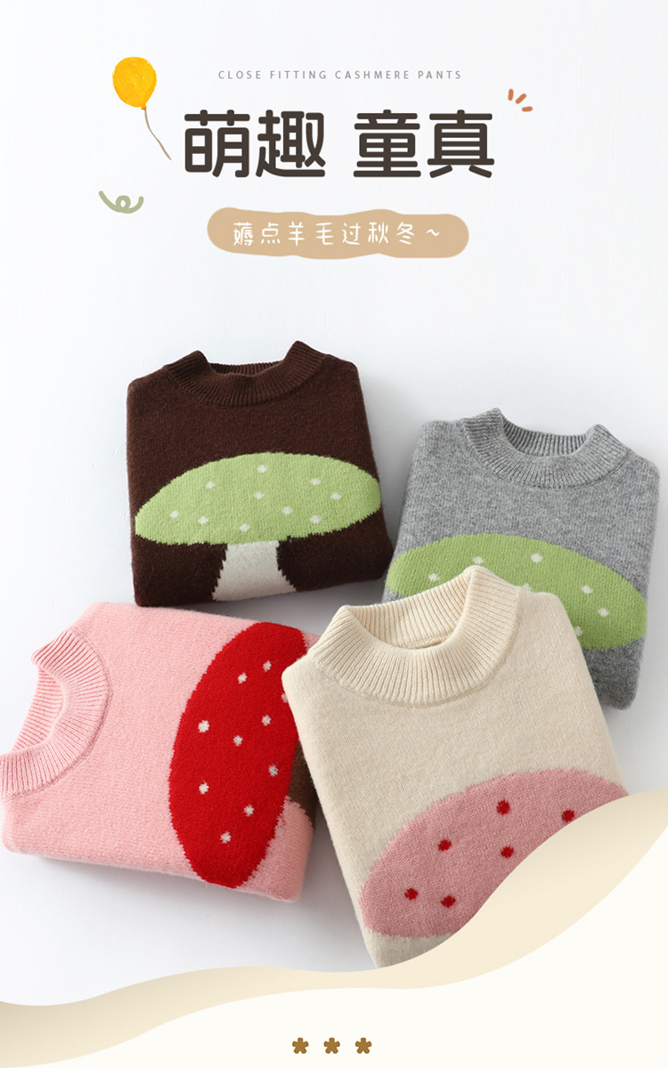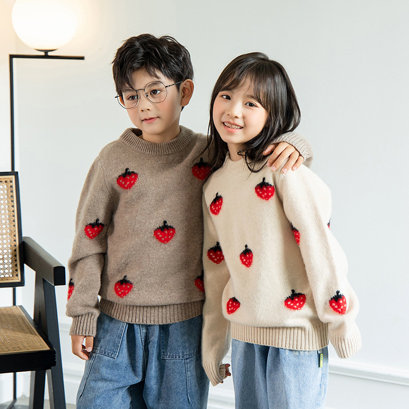 純粋なウールの子供のセーターの丸襟の男の子の女の子の中で大きい子供のイチゴのプルオーバーの厚い赤ちゃんのカシミヤのニット