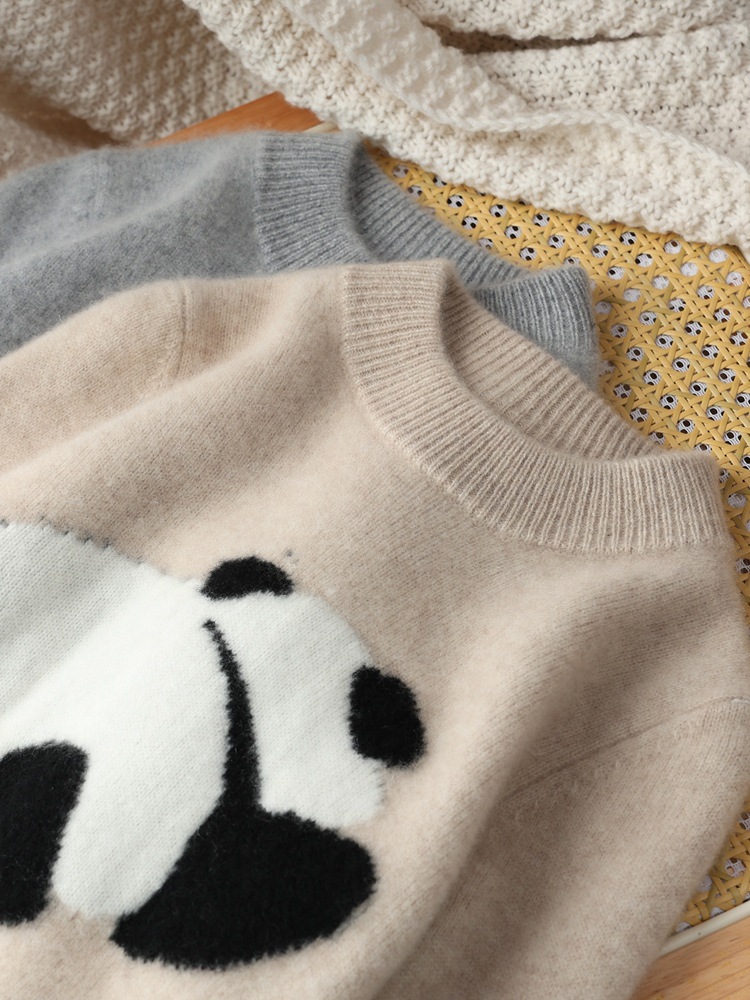 儿童纯羊毛衫秋冬男童毛衣女童中大童洋气熊猫图案打底针织衫