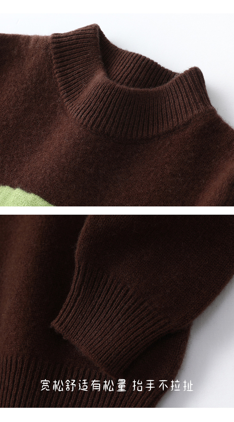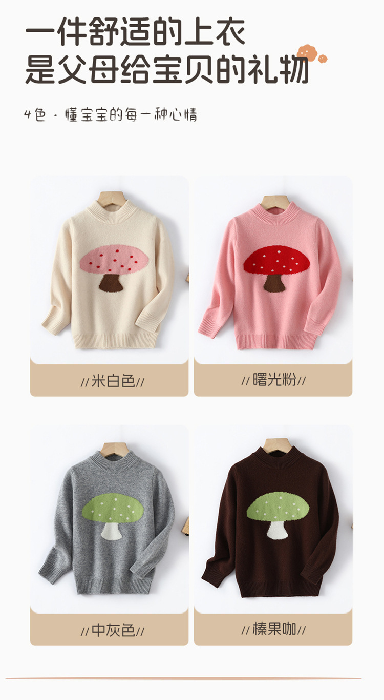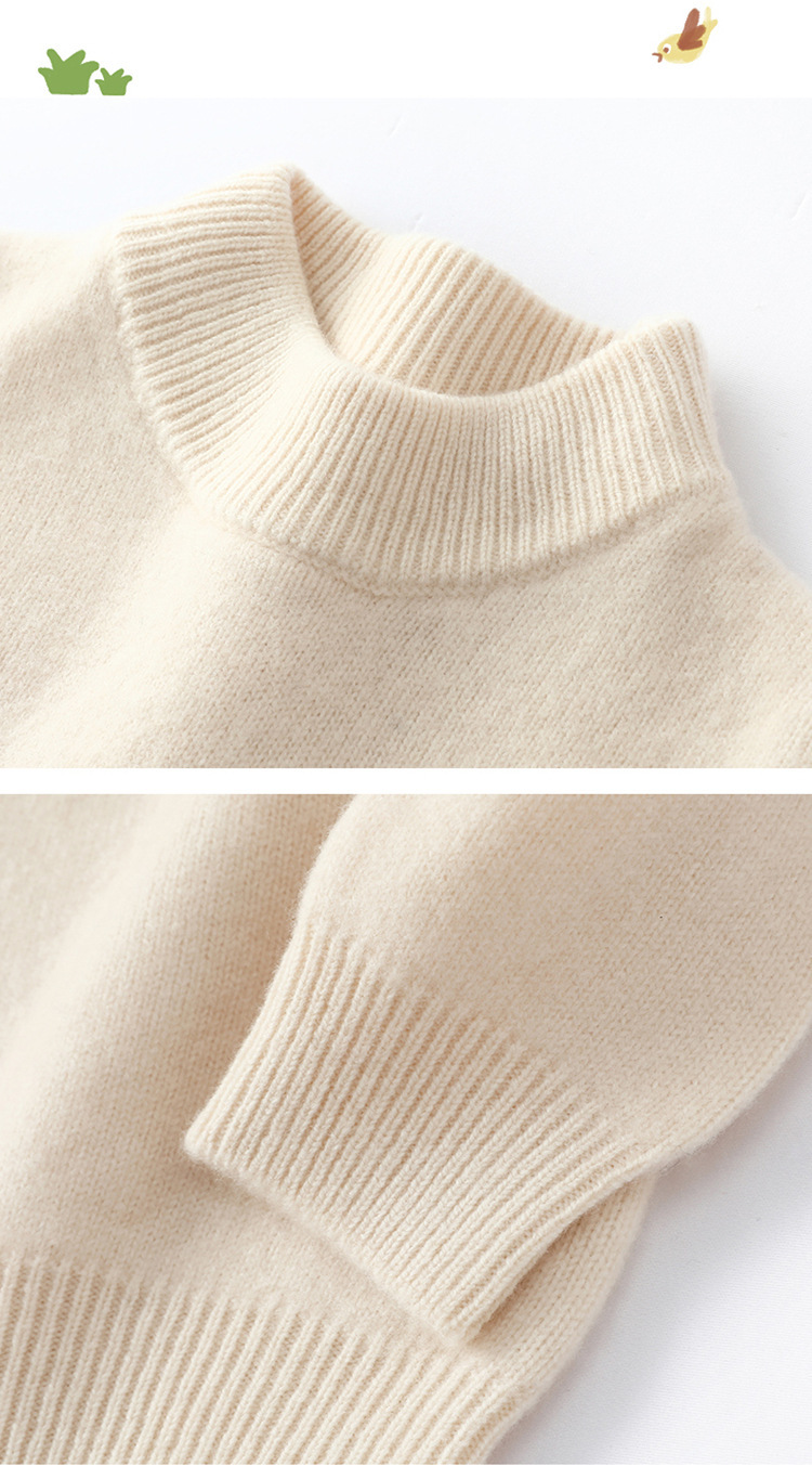 シンプルな子供用純毛ニットセーター、ハーフタートルネック、中高学年向け厚手カシミヤベビー用プルオーバーセーター