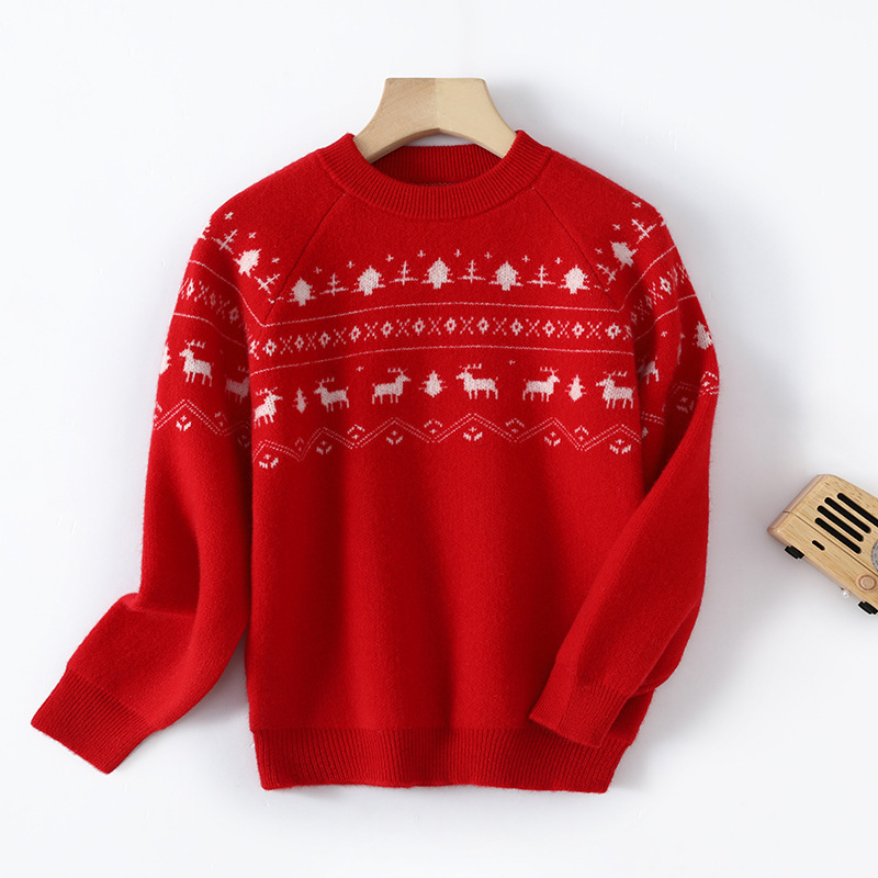 特厚児童保温ウールセーターお祝い赤底クリスマス秋冬長袖男女赤ちゃんニット