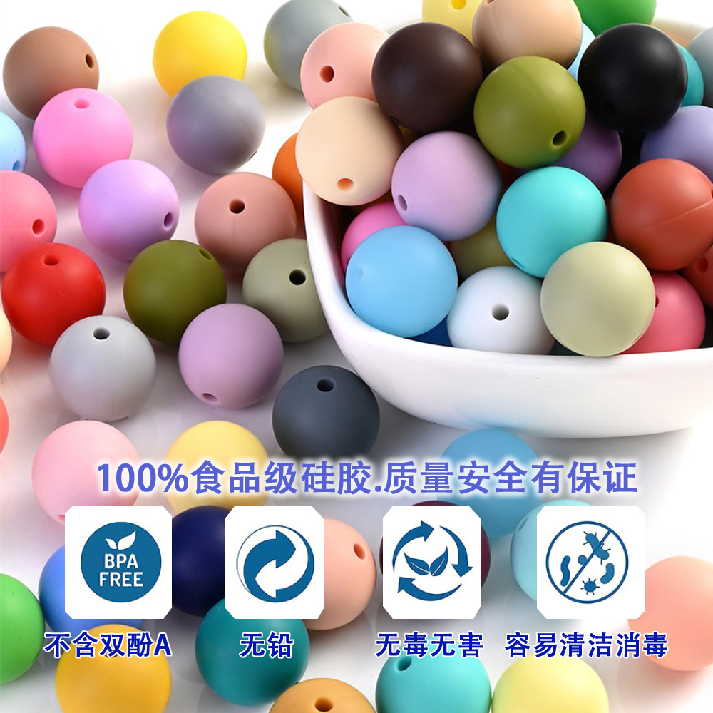 15mm食品级硅胶珠子彩色圆形散珠手工diy手工饰品材料配件