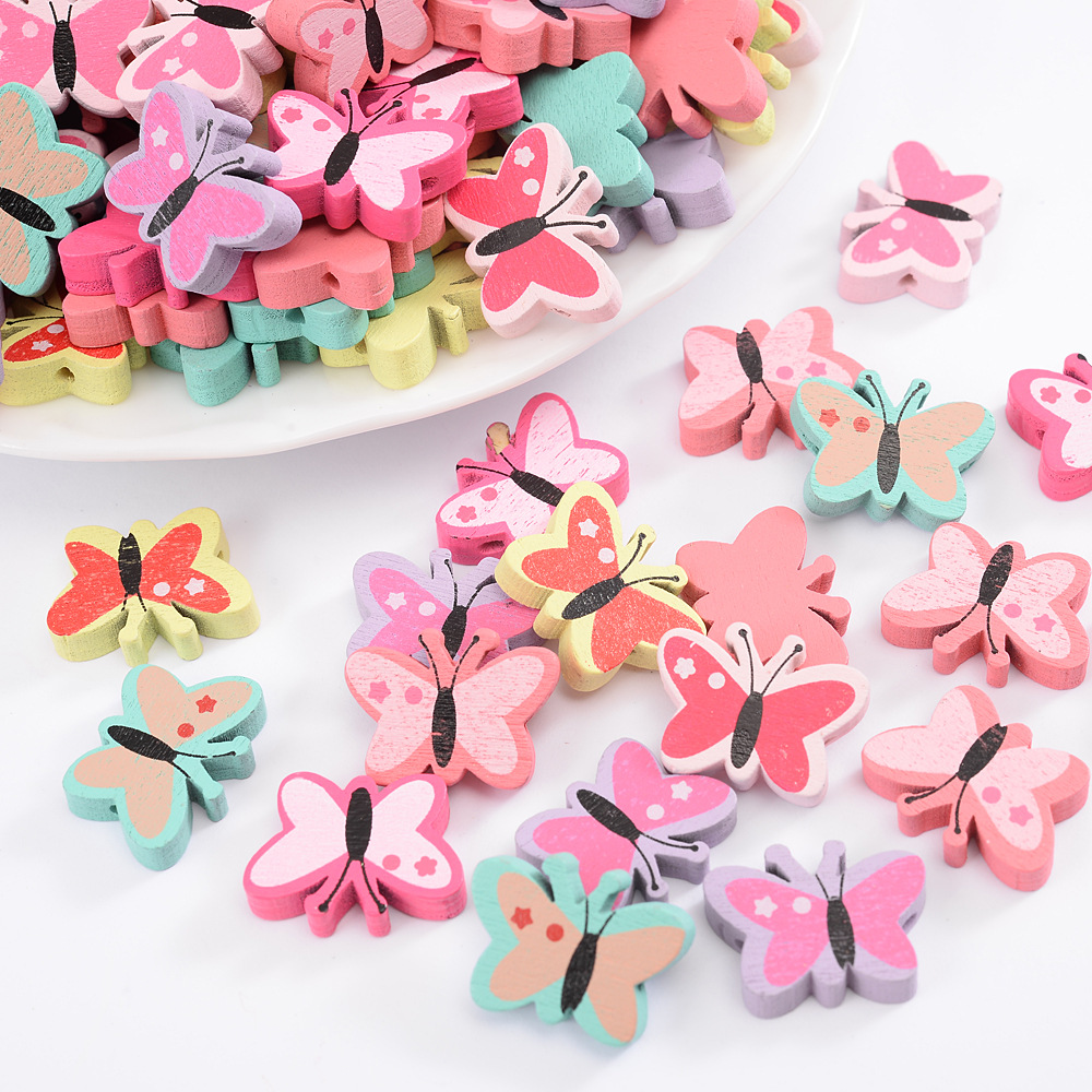 クロスボーダー児童カラー木質パッチカラー小蝶木珠diyネックレスブレスレット