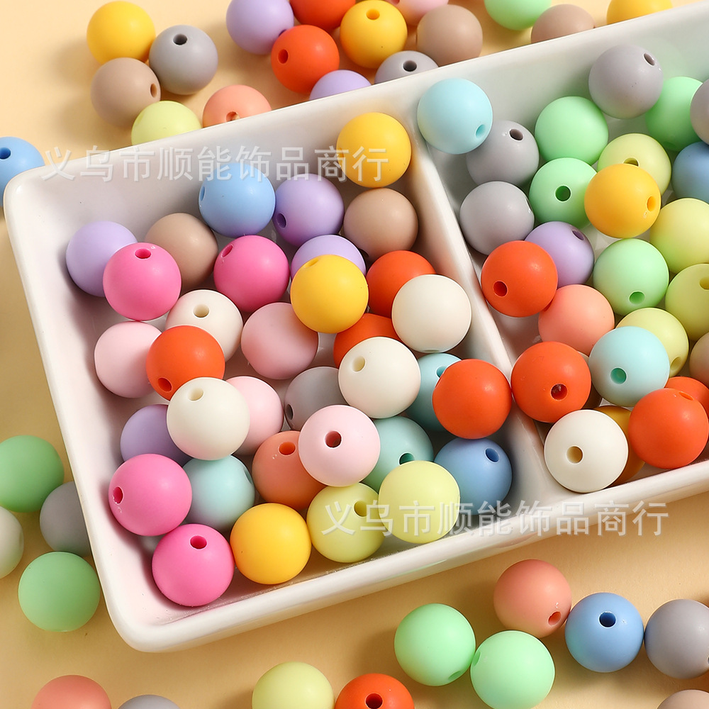 アクリルキャンディーカラーつや消しマットソリッドカラーストレートホールラウンドビーズ手作りルースビーズジュエリー材料卸売