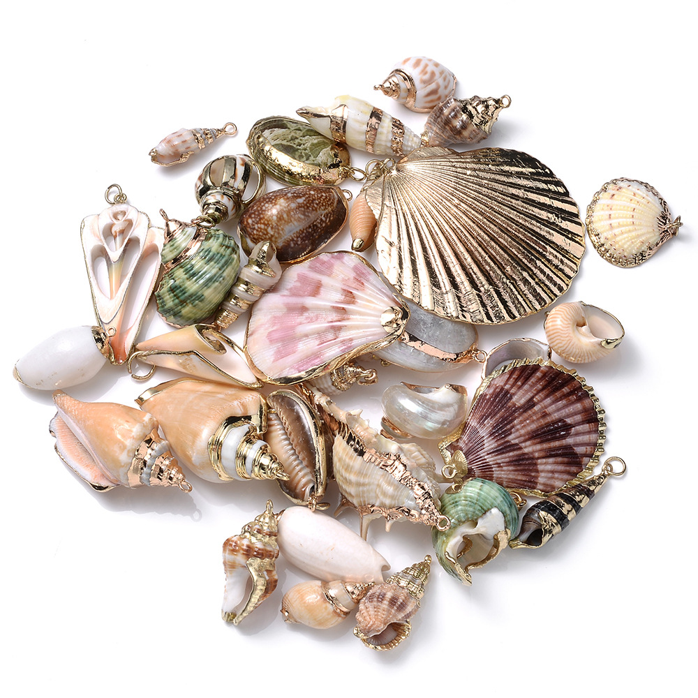 欧米の国境を越えた金メッキ辺の天然貝殻diyアクセサリー海洋貝殻ペンダントアクセサリー