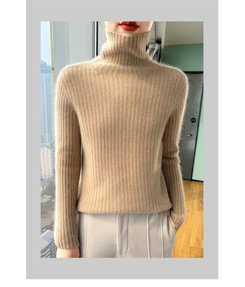 100 ソリッドカラーオールウールボトリングシャツ女性の長袖ストライプスリムニットセーター 25 新しいハーフタートルネックカシミヤセーター