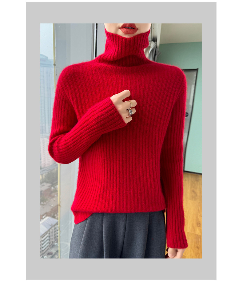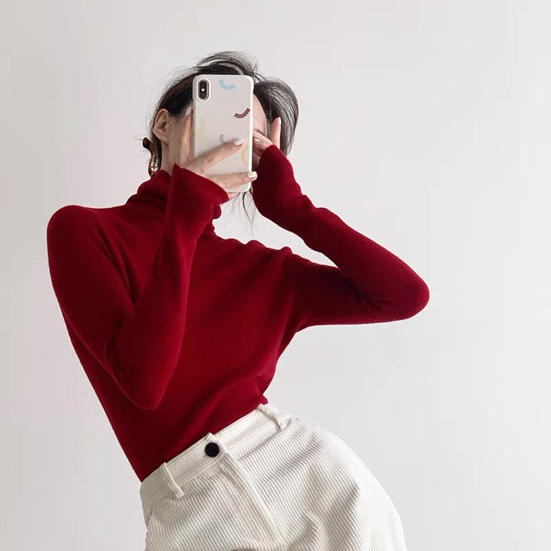 赤い新年のセーターの山のカシミヤのシャツの女性の高襟の修身のセーターの中で積み重ねて襟のメリヤスの底のシャツの秋冬を編みます。