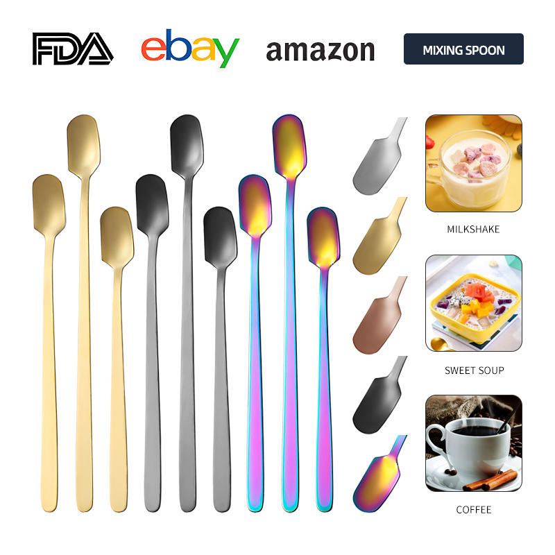 メーカー卸売ステンレス鋼スクエアヘッドスプーンゴールデンロングハンドルハニーマグミキシングスプーンデザートスプーンギフトスプーン