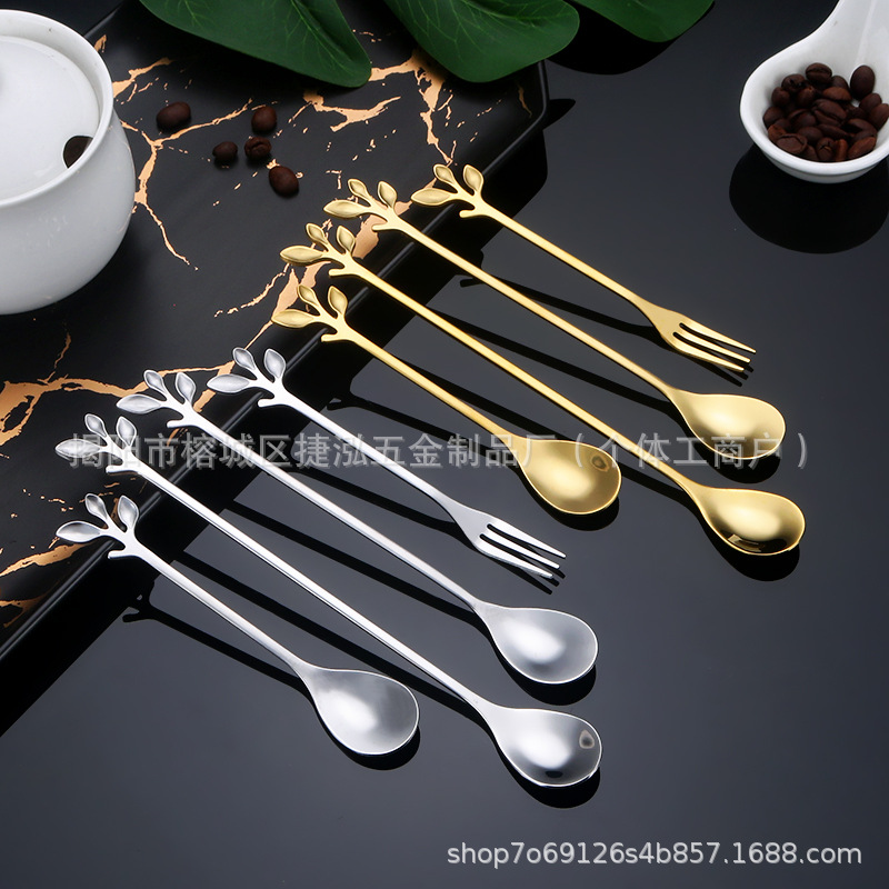 ステンレスの葉のスプーンのフォークの長い柄のコーヒーのスプーンの果物のフォークはスプーンのツバメの巣の贈り物のスプーンの食器の卸売りをかき混ぜます。