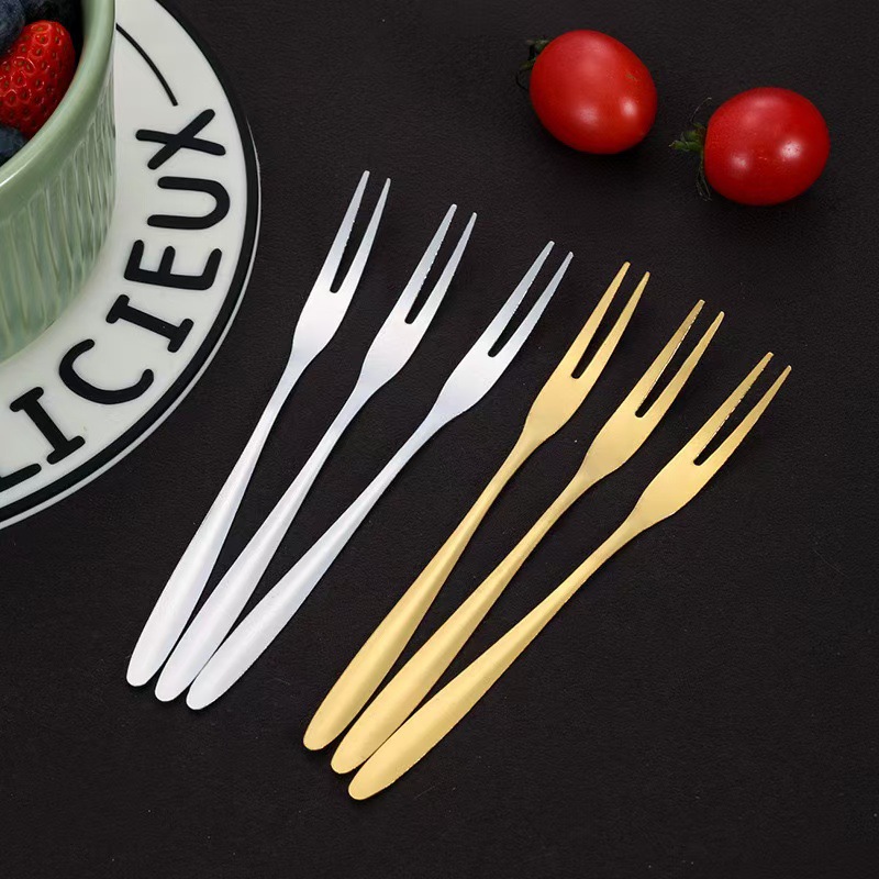 ステンレスフォーク 家庭用 二股フルーツフォーク ケーキ・月餅フォーク ホテル洋食デザートフォーク ビジネスギフトフォーク