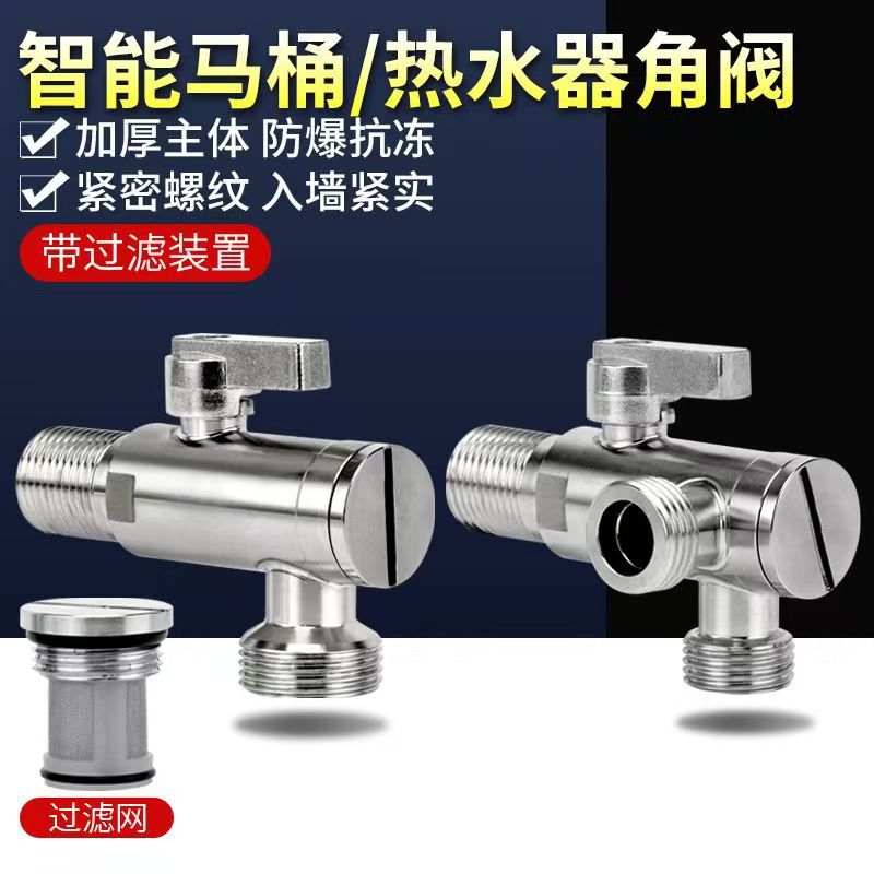 304智能马桶角阀带过滤网一分二4分转6分坐便器开关大流量止水阀
