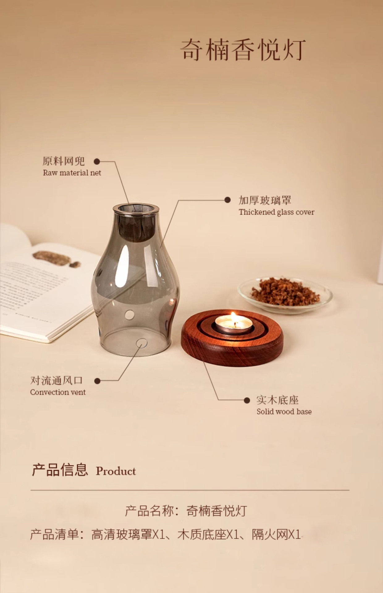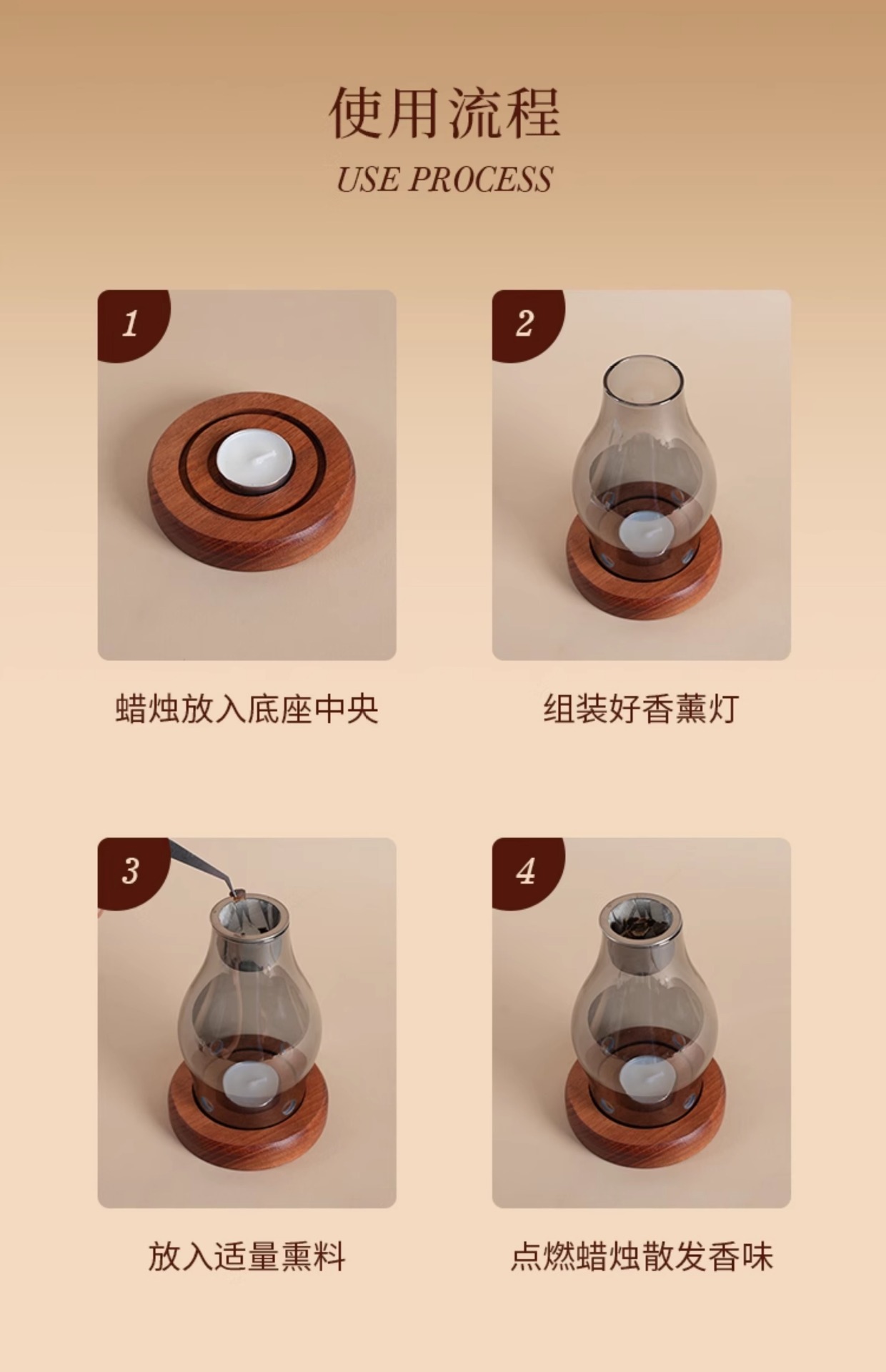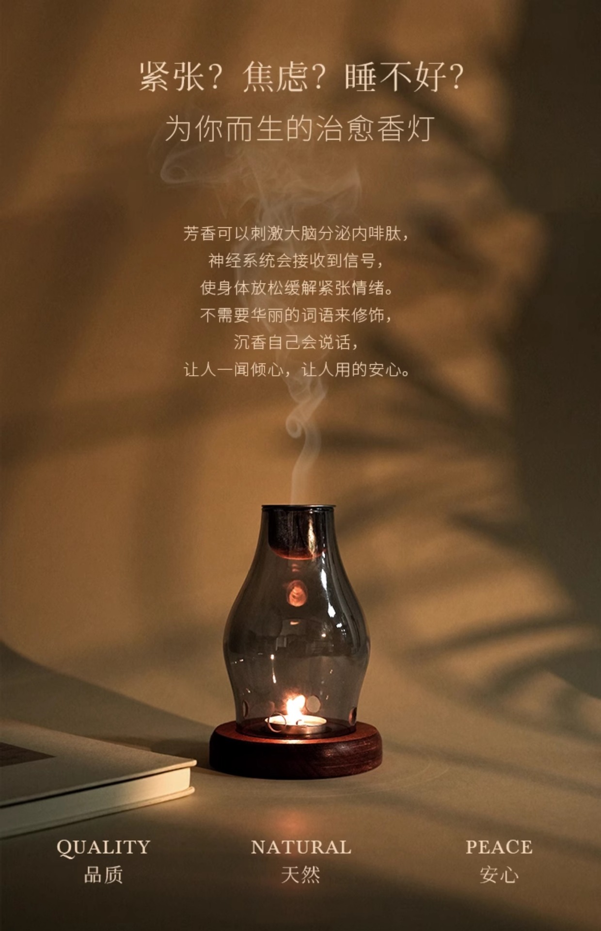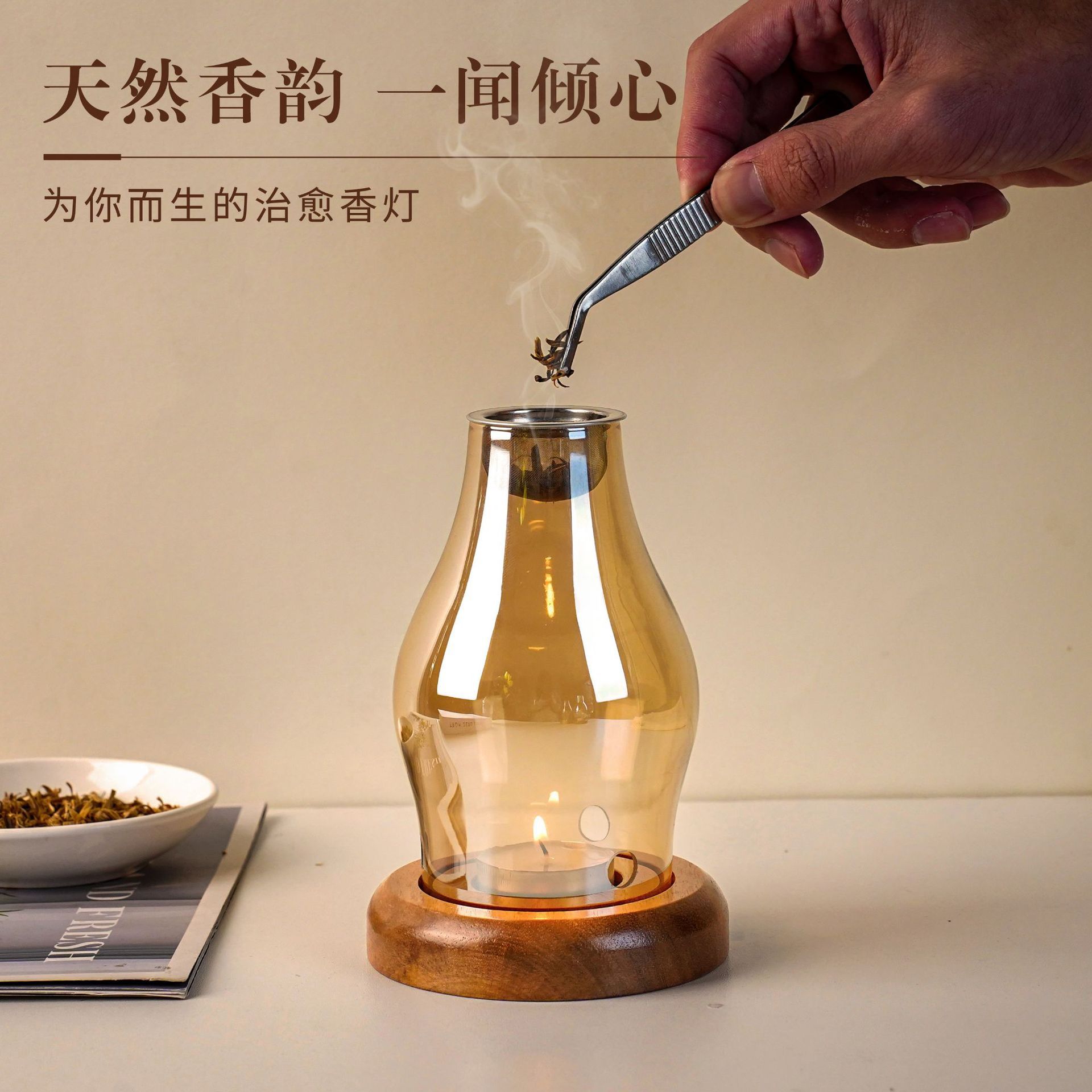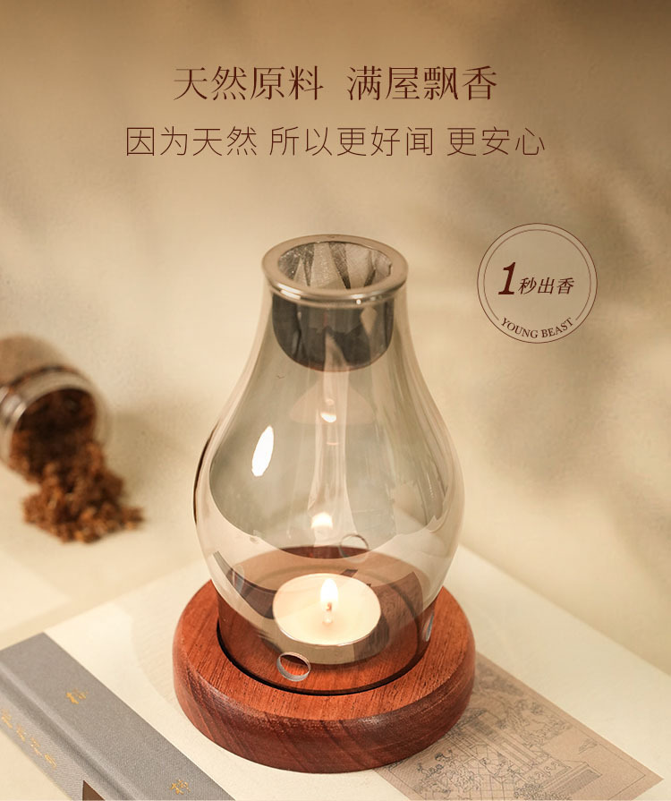家用美容院安神香薰灯玻璃烛台熏香炉檀香沉香香粉中式蜡烛沉香灯
