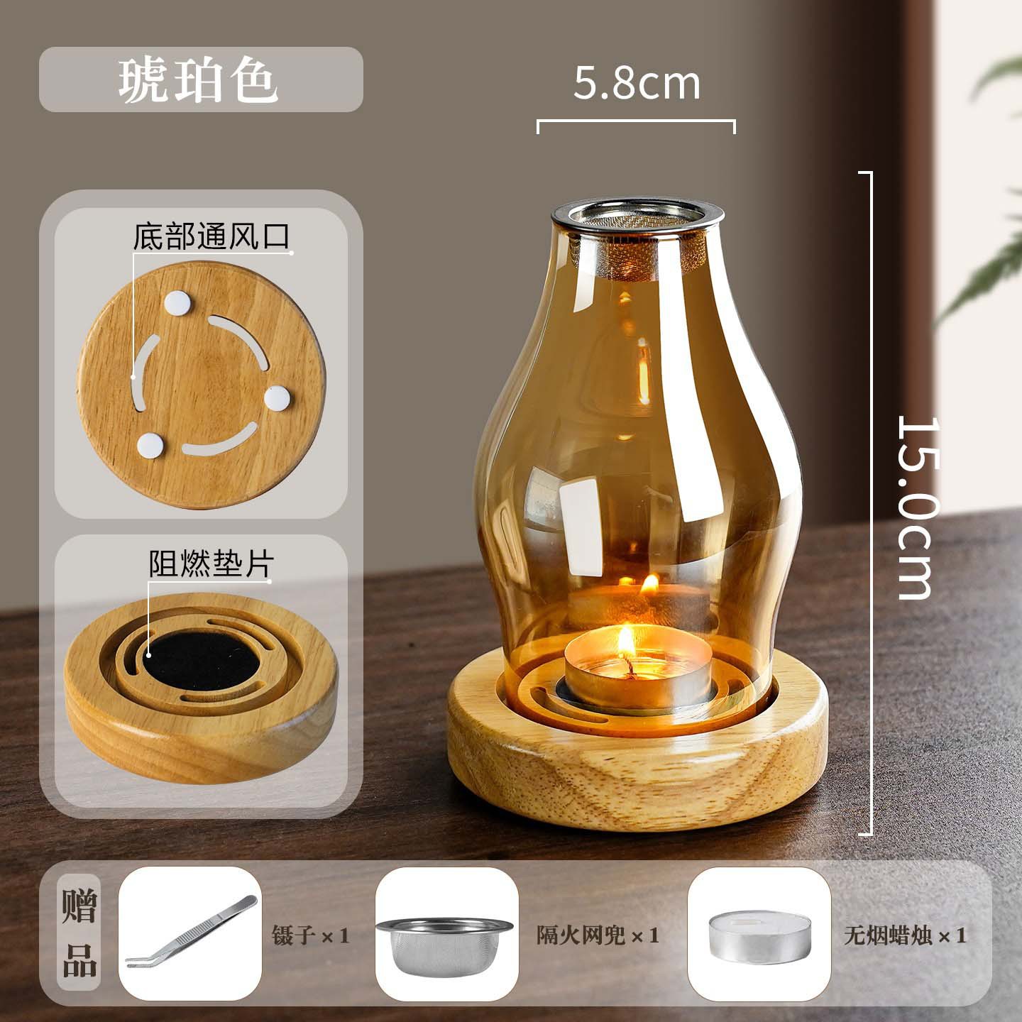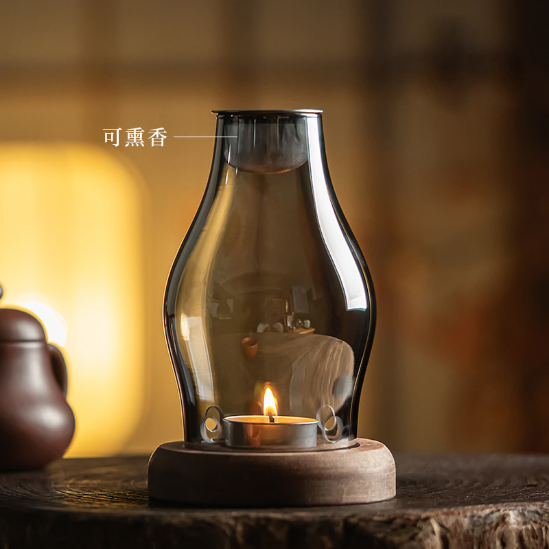 熏香炉玻璃香薰摆件蜡烛灯烛罩台复古家居日用隔火熏香炉沉香灯