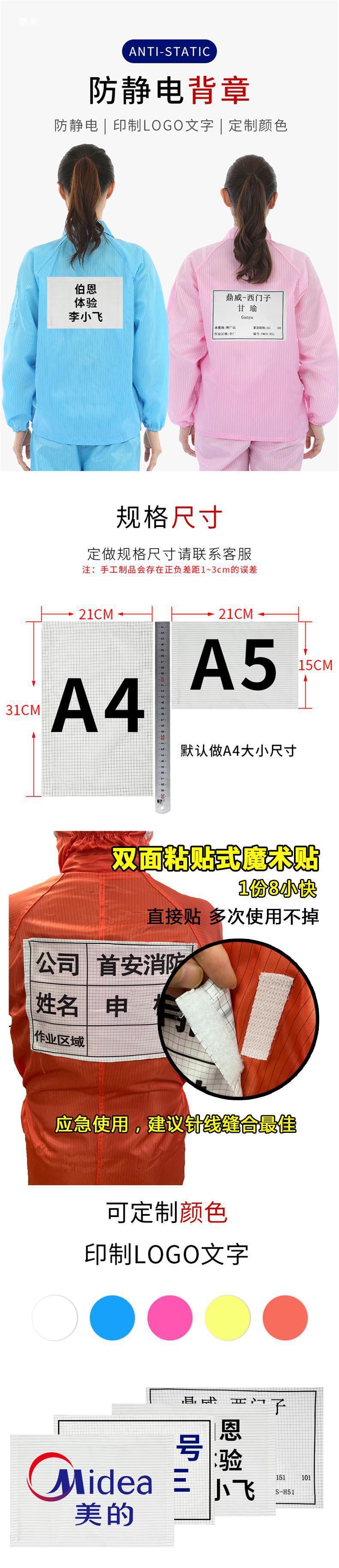 静電気防止服クリーン服クリーンバックラベルネームプレート表示印ネーム番号印刷ロゴ保護服