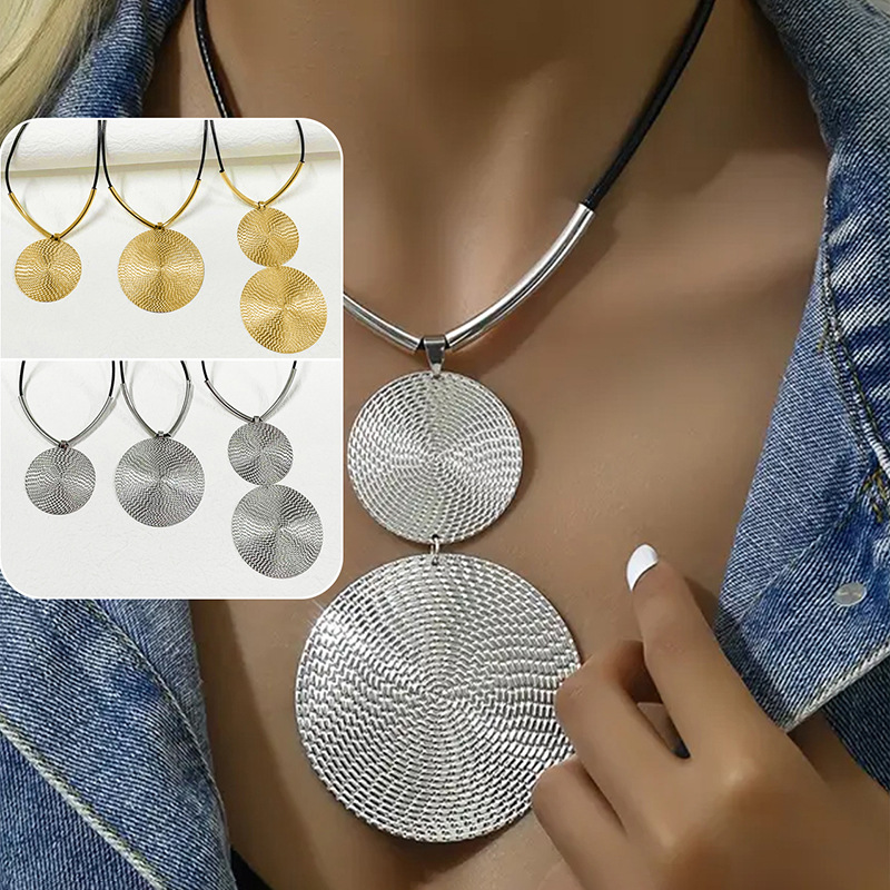 欧米国境を越えた金属ファッションシンプルな円形透かし彫りイヤリングの大きさの円の高級感ネックレスセット