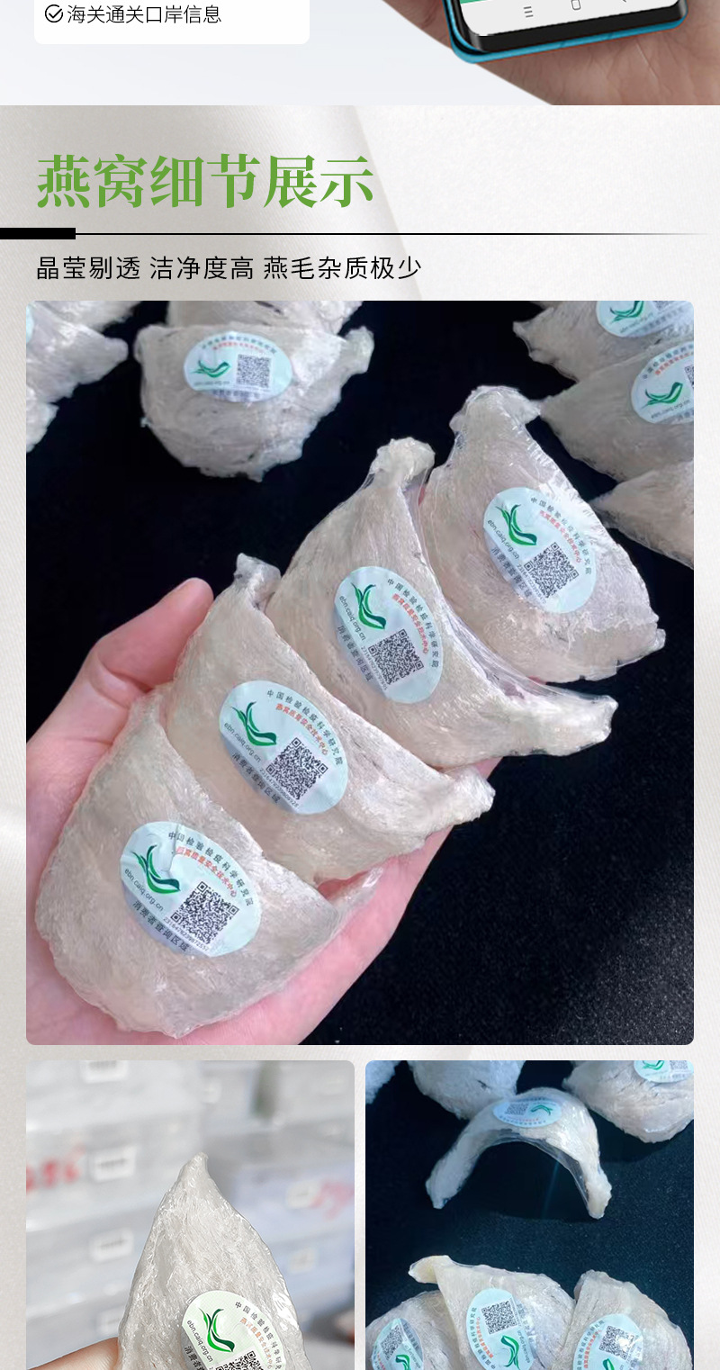 马来CAIQ溯源大燕条一条一码鲜炖批发孕妇滋补足干雨季燕窝燕盏