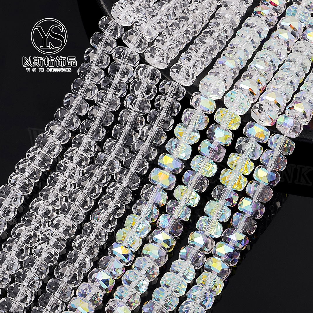 8mm玻璃车轮珠水晶扁晶电镀不褪色扁珠跨境手工DIY手链散珠半成品