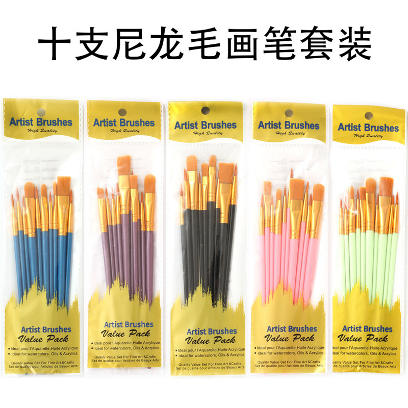 跨境爆款20支珠光塑料杆油画笔套装尼龙毛儿童绘画笔油画水粉画笔
