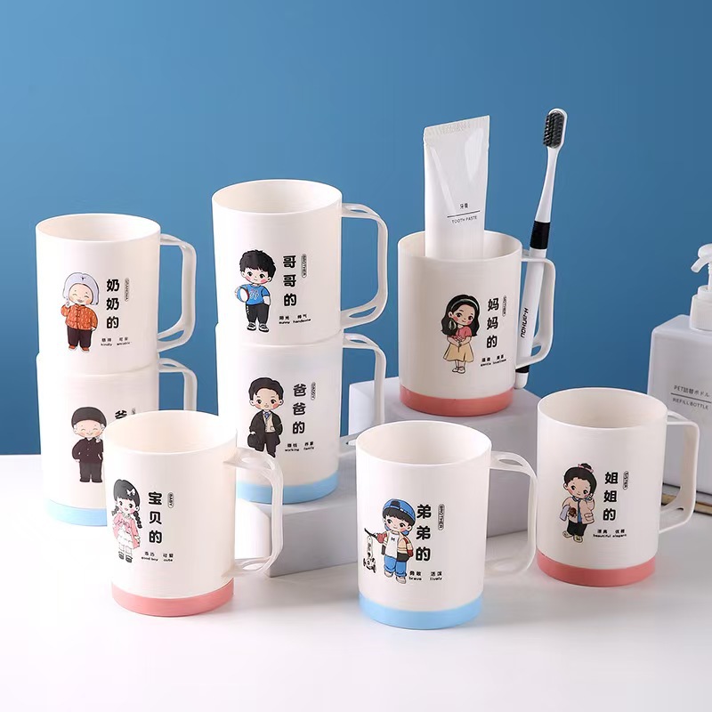 漫画親子歯磨きカップ家族ポートレートセットウォッシュカップ肥厚プラスチック家族マウスウォッシュカッププラスチックボウル
