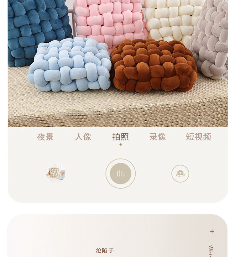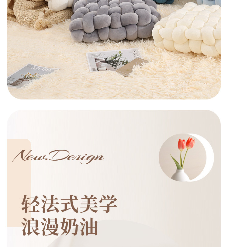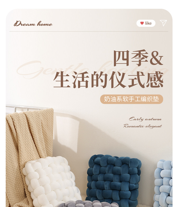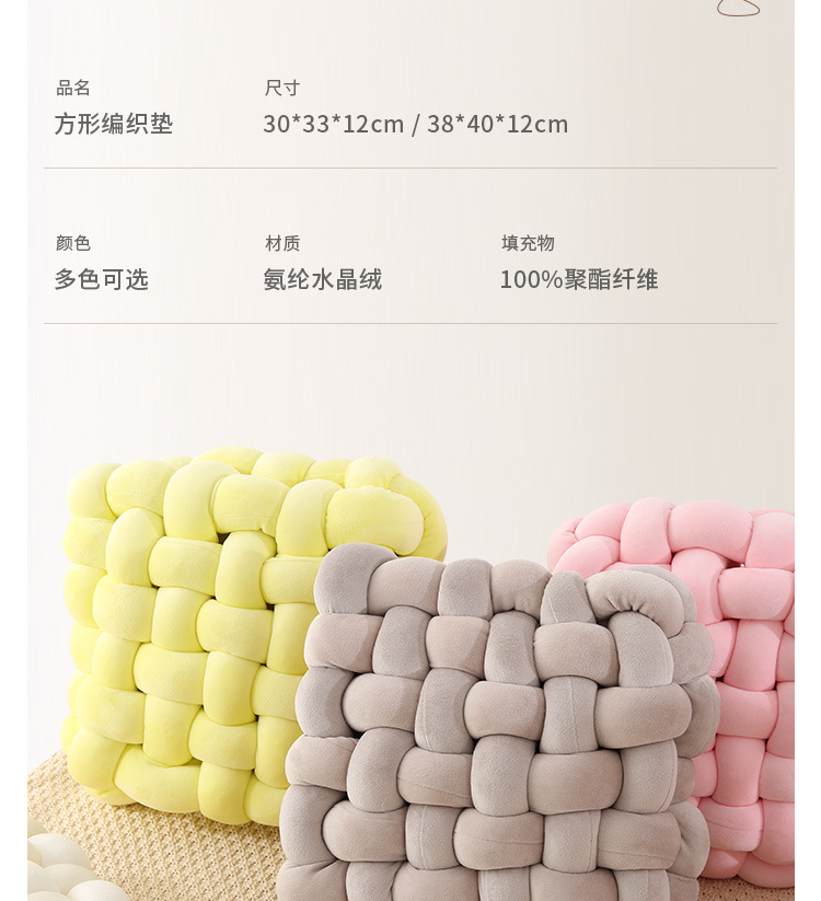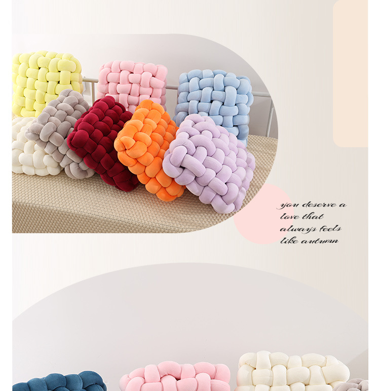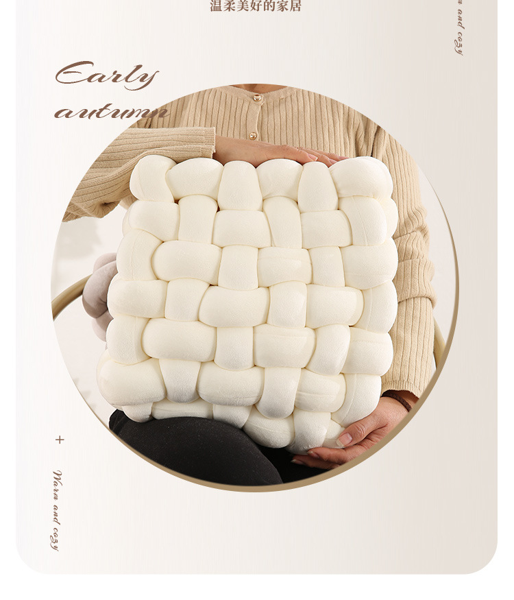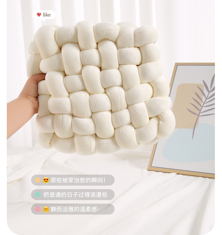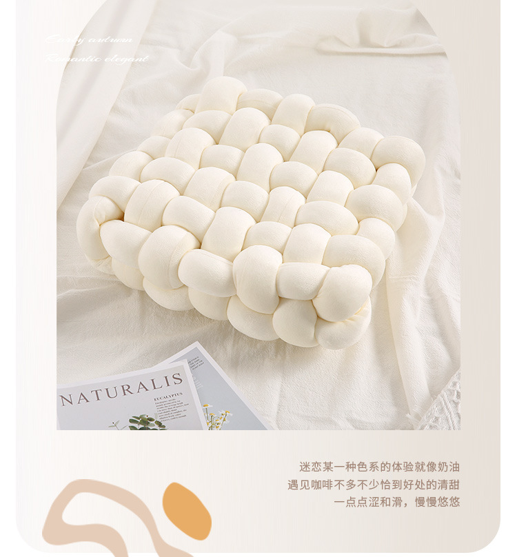 国潮客厅装饰抱枕奶油风纯色靠枕沙发靠垫编织午睡枕治愈系靠背垫