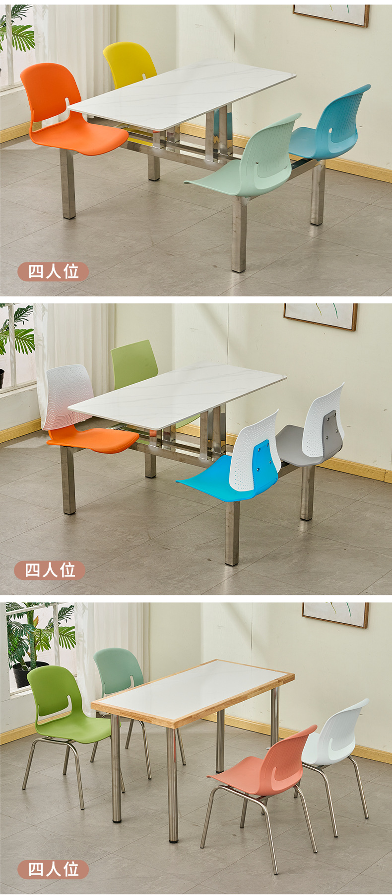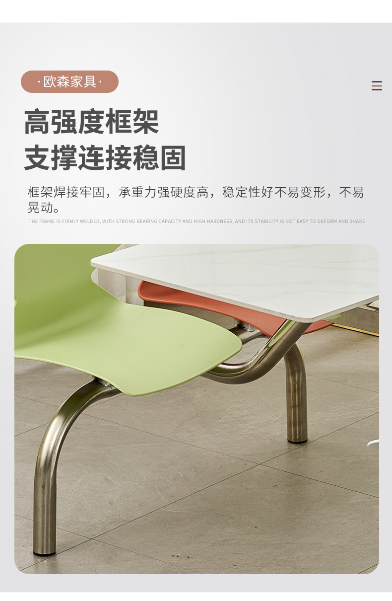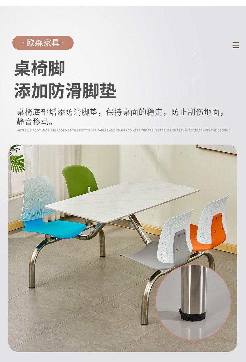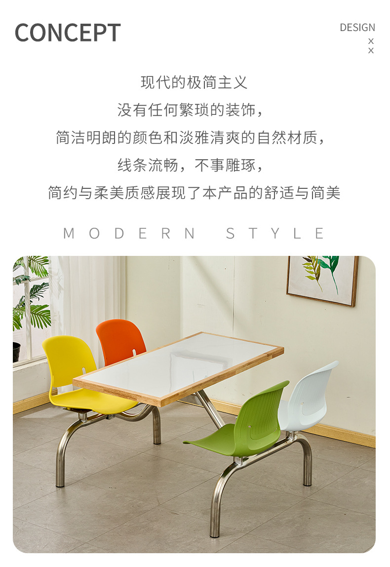 全ステンレス食堂連体テーブルと椅子4人6人8人の企業事業単位ステンレス食卓