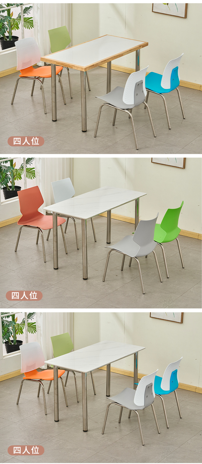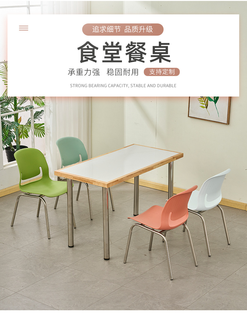 ステンレススタンド実木岩板デスクトップ食堂テーブルと椅子4人の工場従業員学校食堂の食卓
