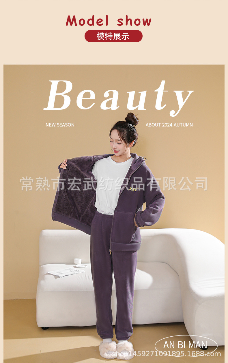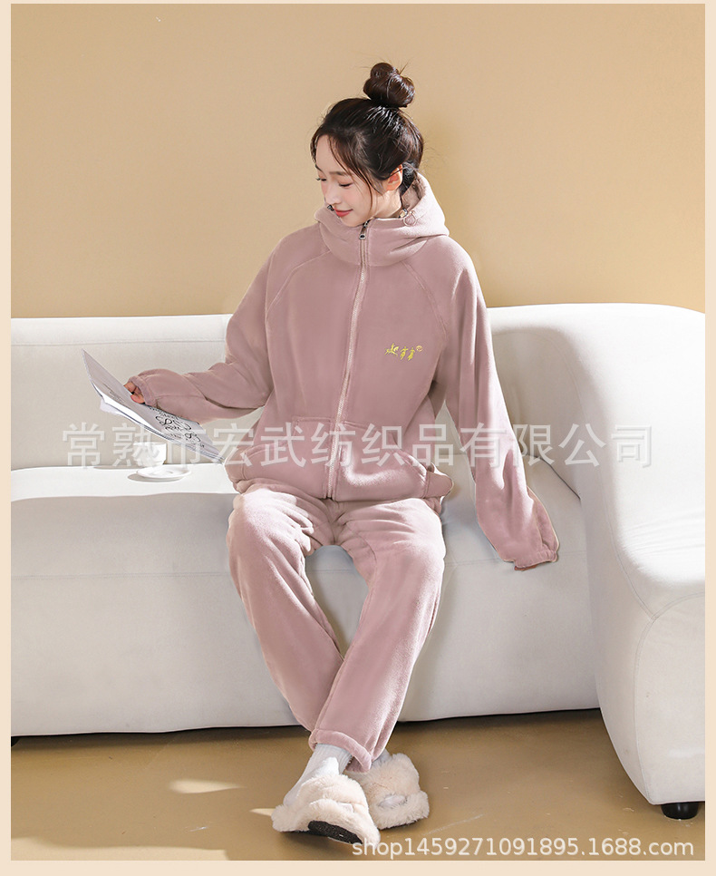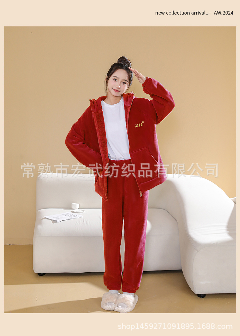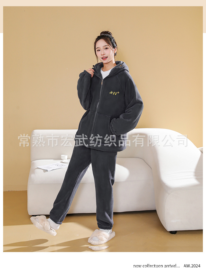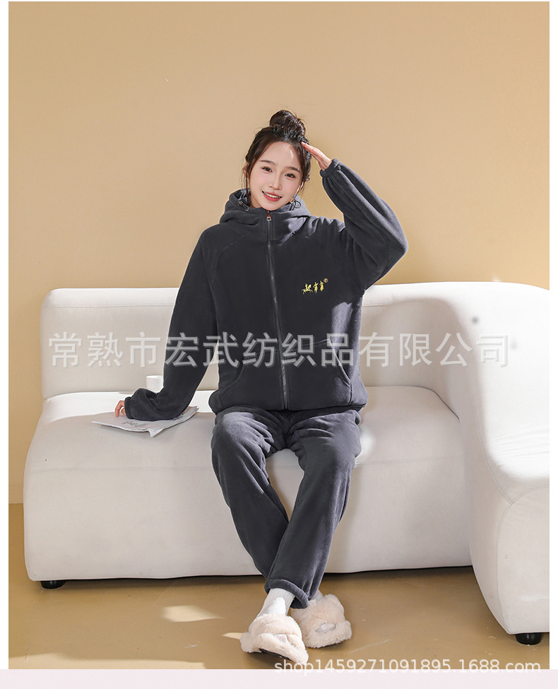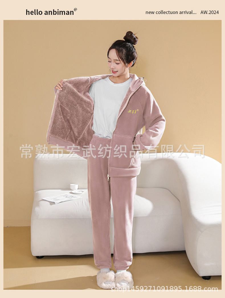 睡衣女冬季珊瑚绒加厚加绒三层夹棉超厚拉链可外穿冬天家居服套装