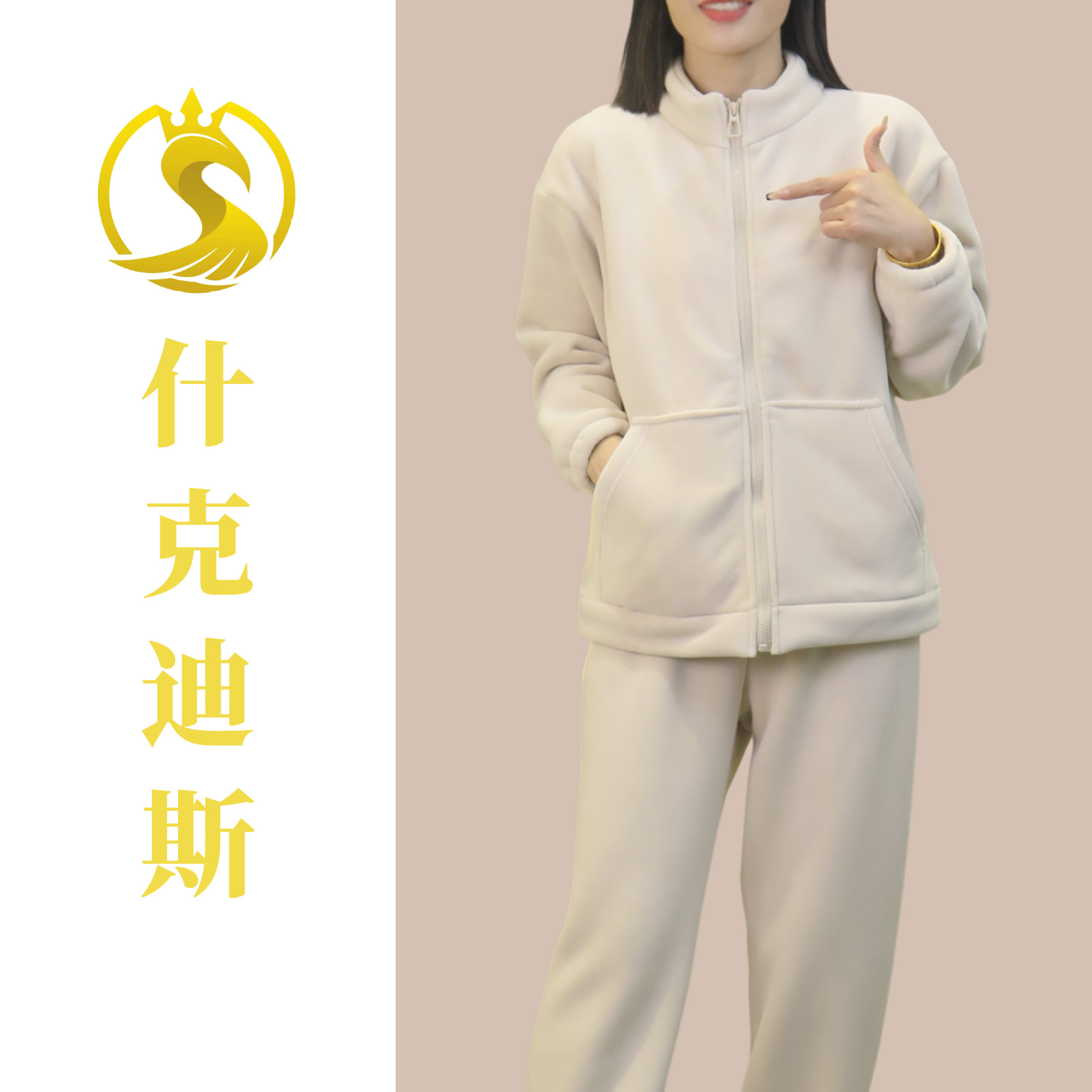 情侣睡衣秋冬珊瑚绒加绒加厚保暖立领拉链轻运动大码可外穿家居服