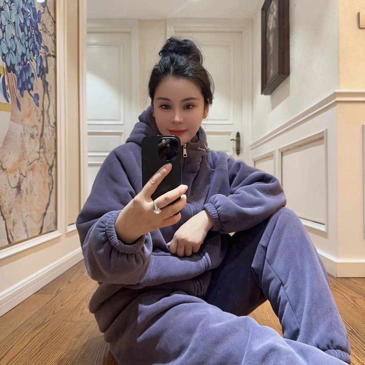 外穿奥利绒保暖套装女冬休闲宽松两件套时尚运动居家可秋冬家居