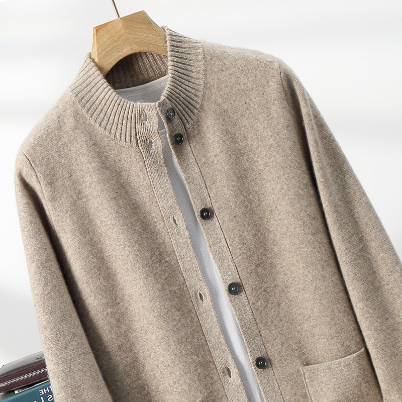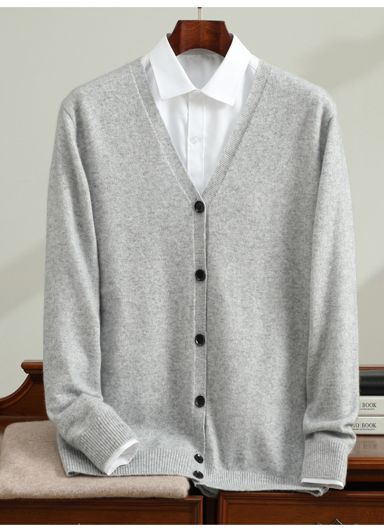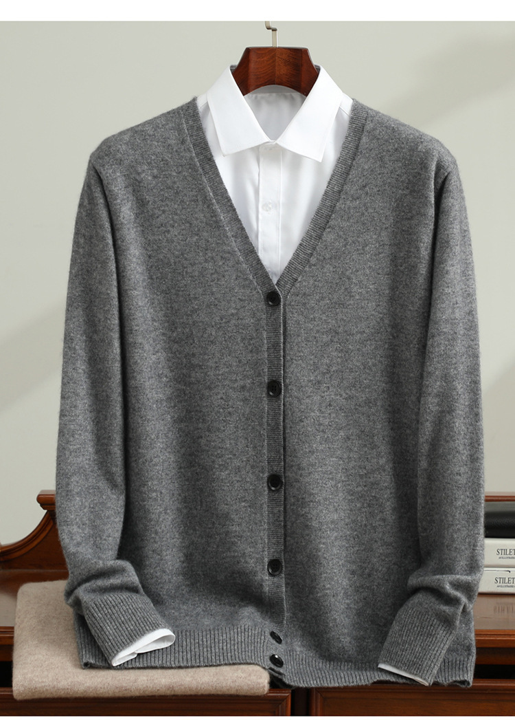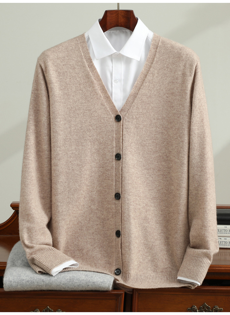 純山羊毛カーディガン メンズ 純羊毛Vネック ゆったり ビジネスカジュアルセーター 2025 ニットジャケット 春秋