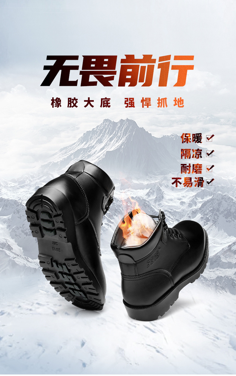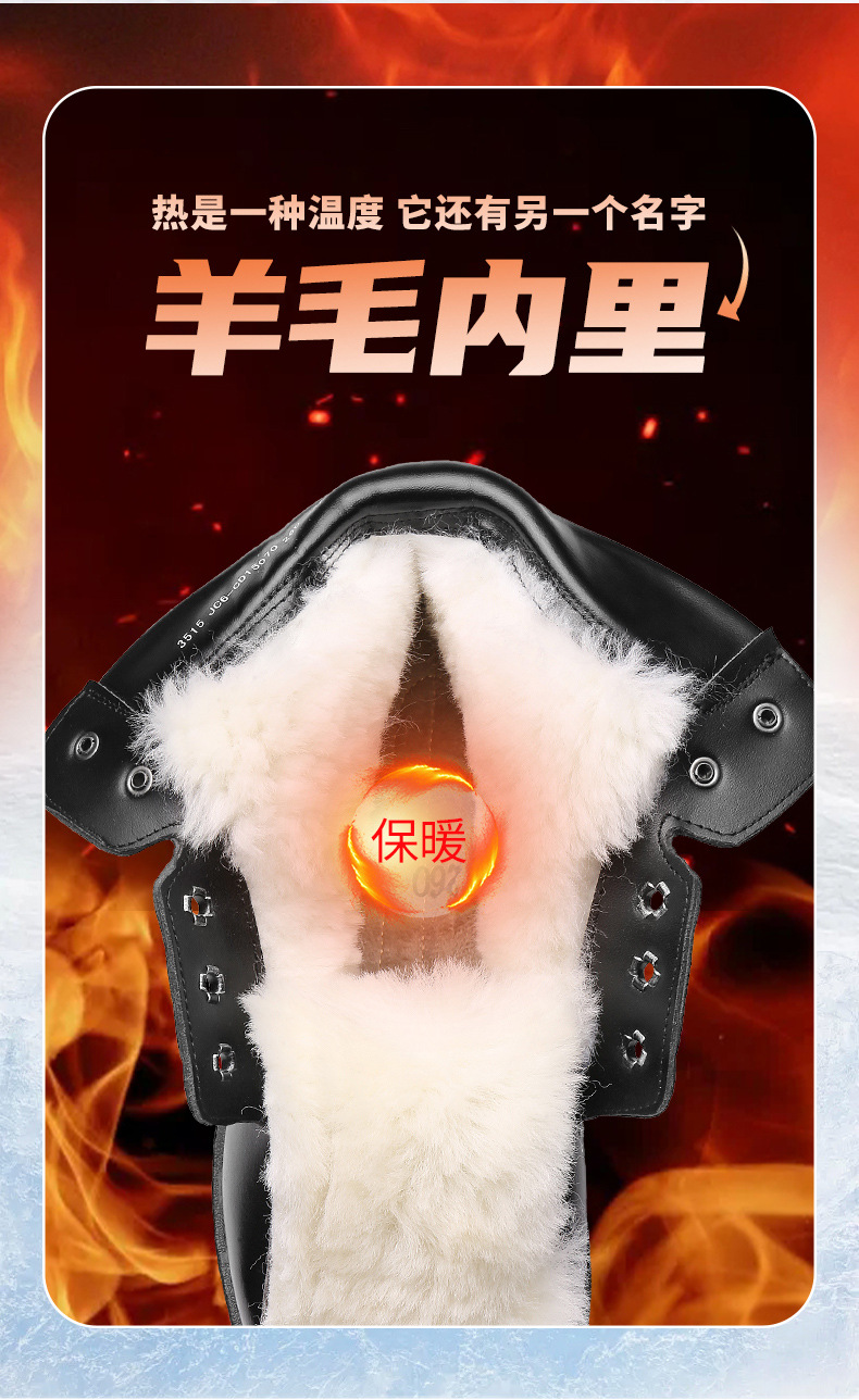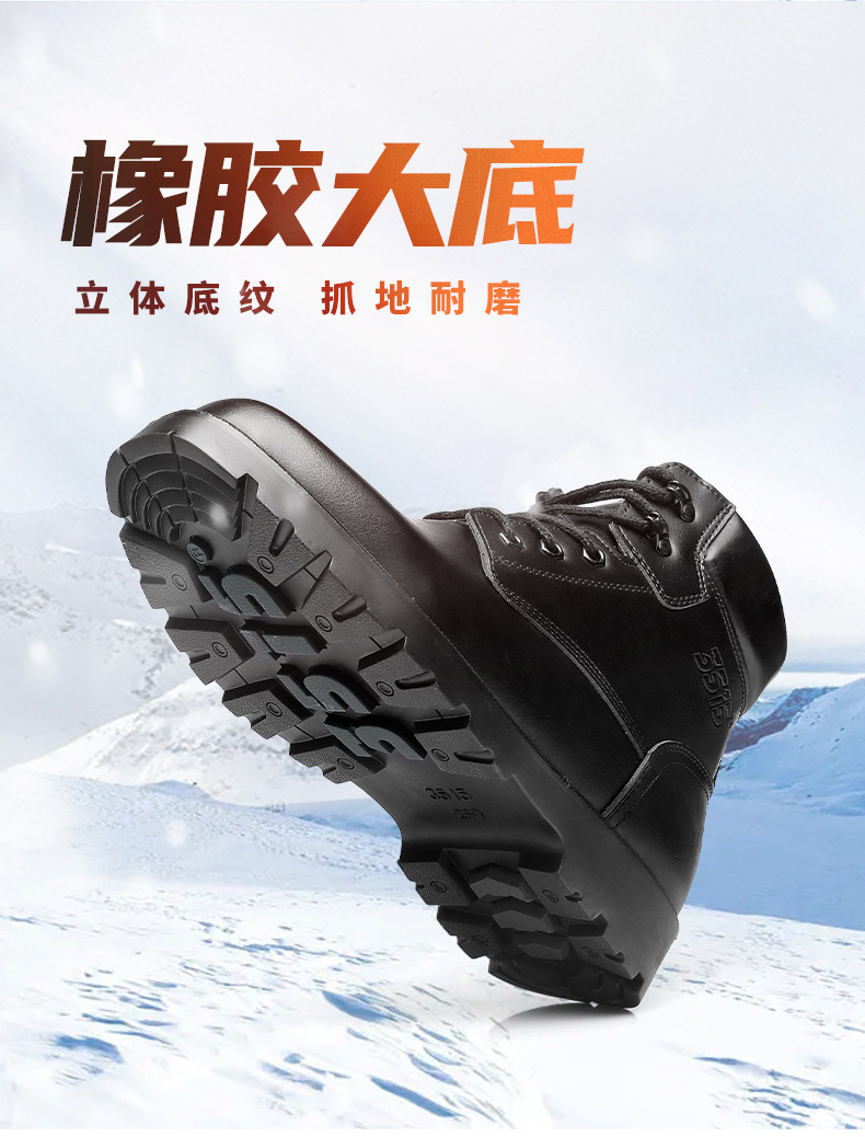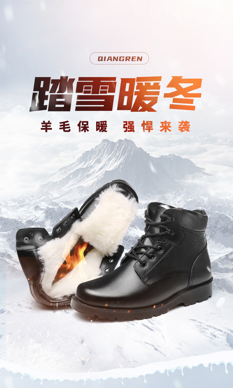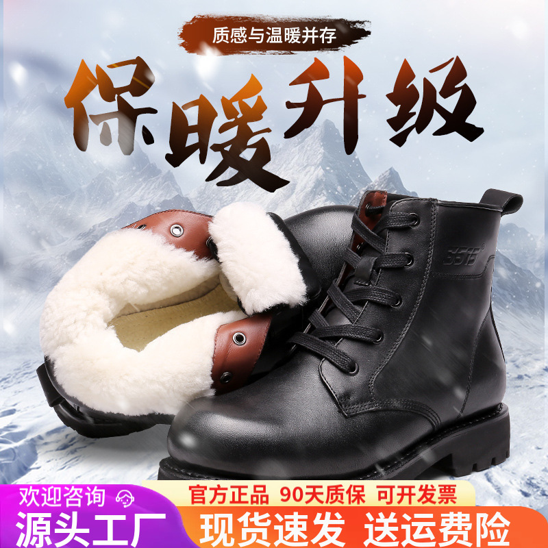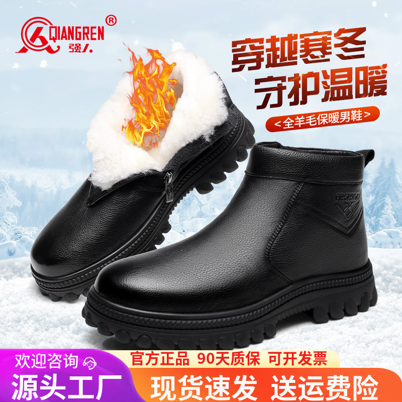 3515强人男靴冬季头层牛皮商务棉皮鞋加绒保暖厚底全羊毛防寒靴