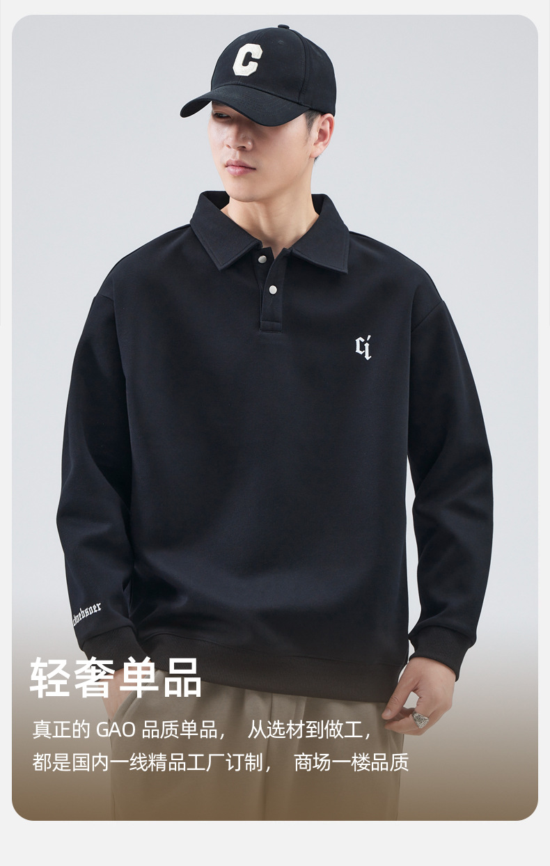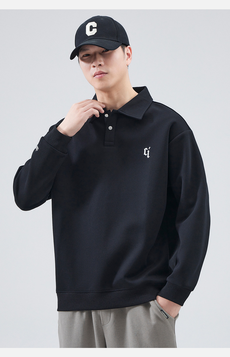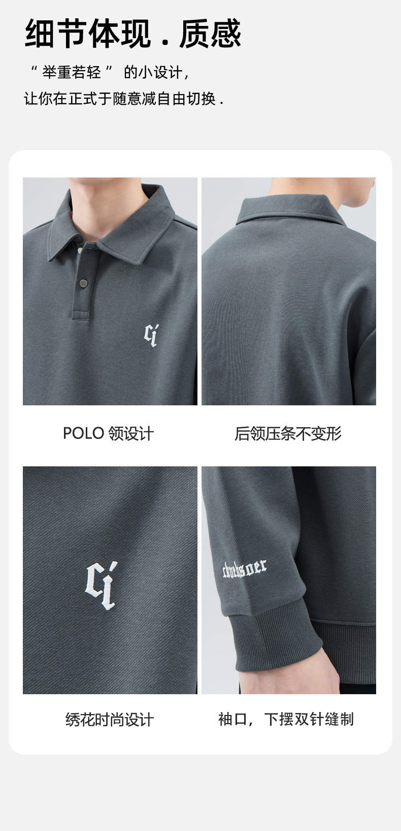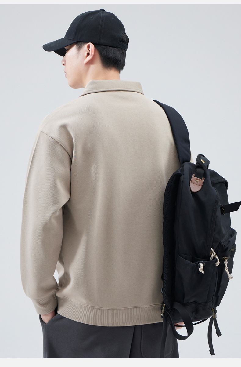 380 グラムヘビーウェイトラペルスウェットシャツメンズ秋シルエットレトロライト高級オールドマネー長袖ポロプルオーバージャケット