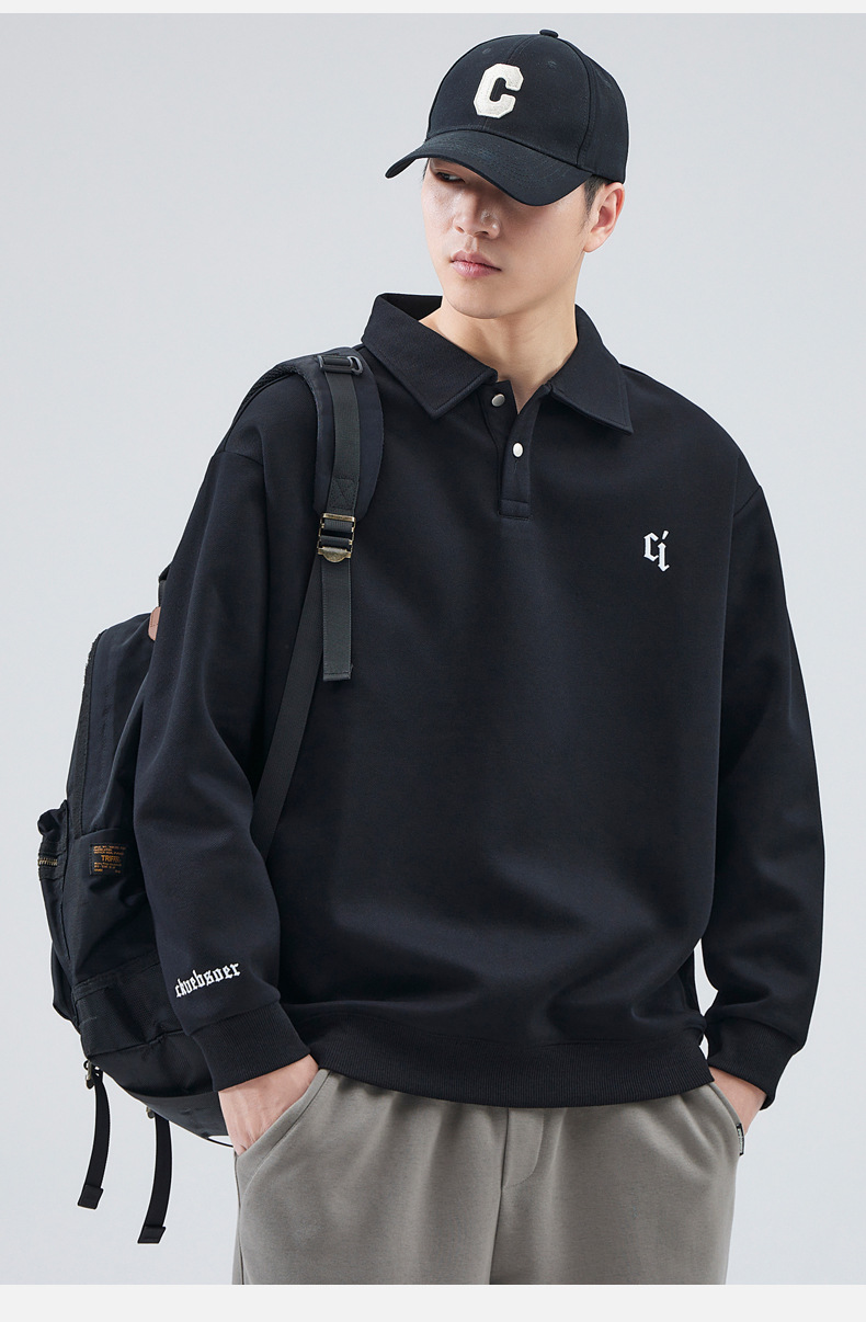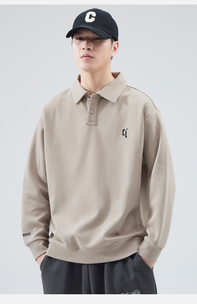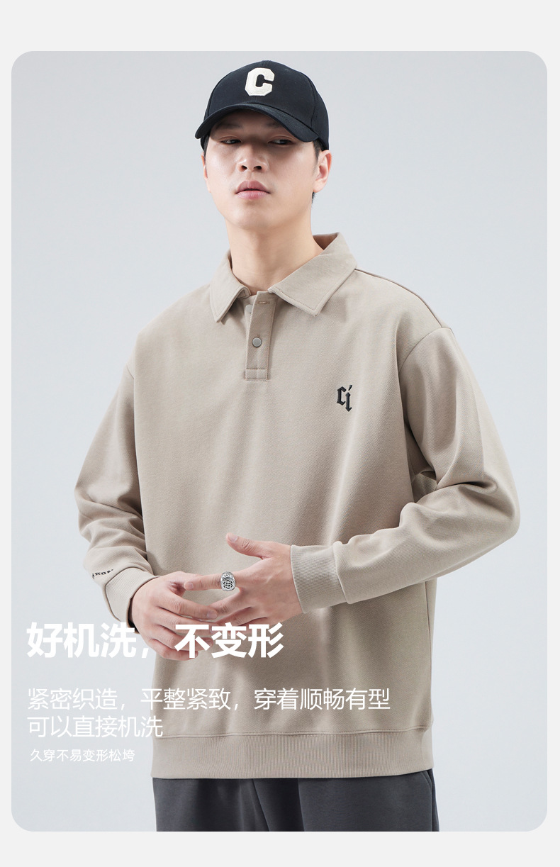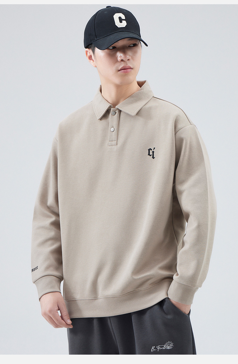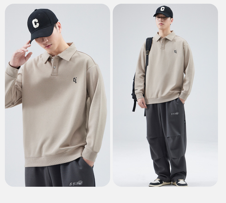 380 グラムヘビーウェイトラペルスウェットシャツメンズ秋シルエットレトロライト高級オールドマネー長袖ポロプルオーバージャケット