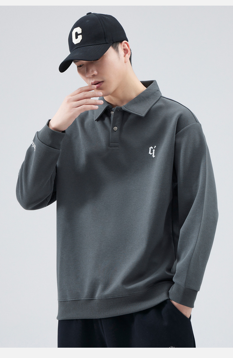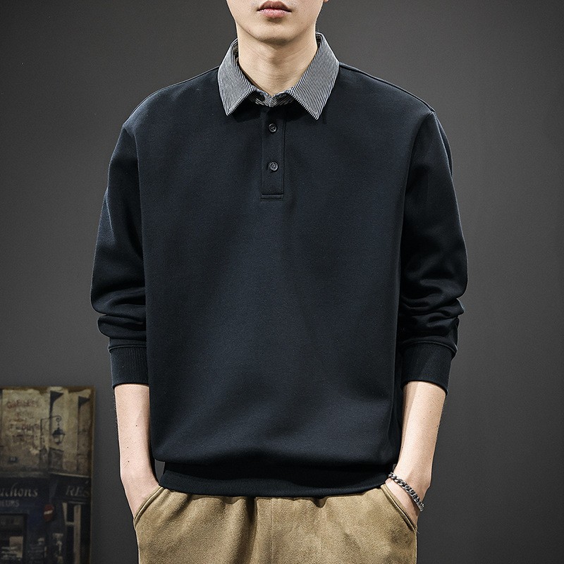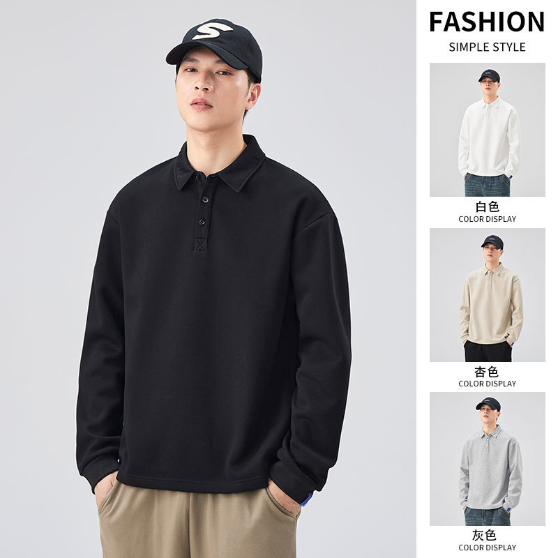 ダンバオニ | 秋冬新作 裏起毛 メンズ ヘビーウェイト ラペル付き 長袖ポロシャツ 無地 ゆったり 長袖スウェットシャツ
