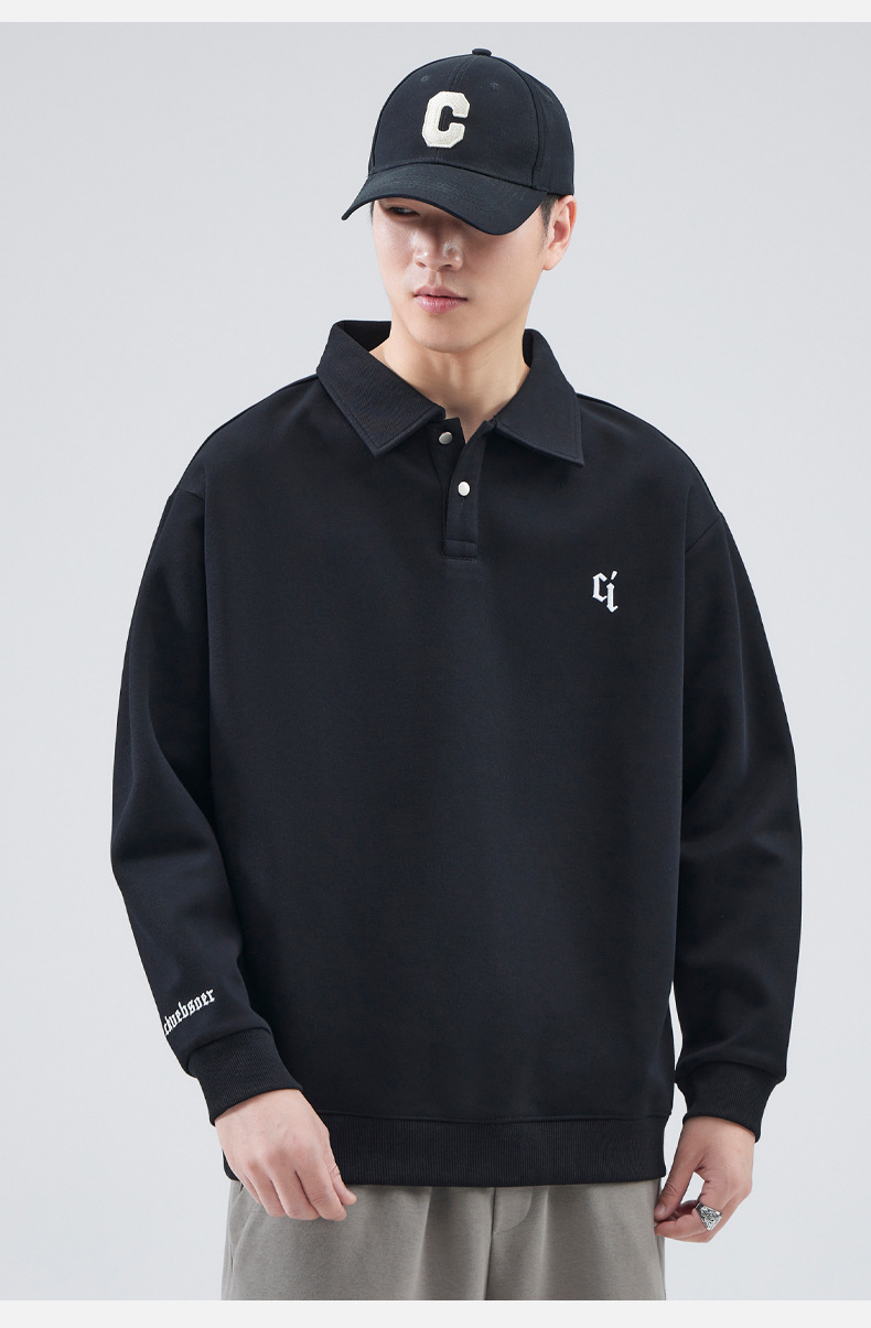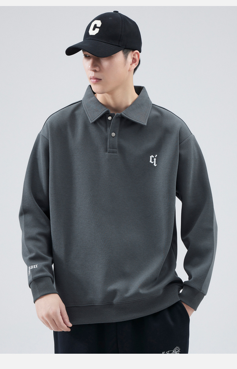 秋の長袖poloシャツの男性のゆったりとしたカジュアルな重ポンドのパーカーの潮牌のアルファベットの刺繍のtシャツの秋の服の襟の上着