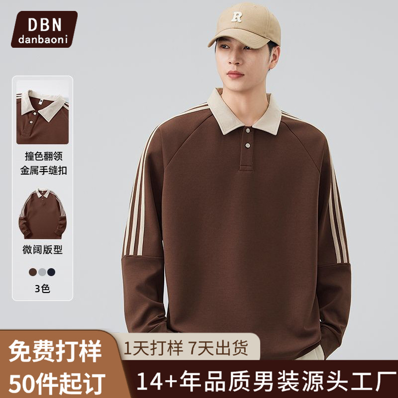 丹保尼|秋季新款polo衫男长袖翻领撞色潮青年休闲百搭微阔上衣