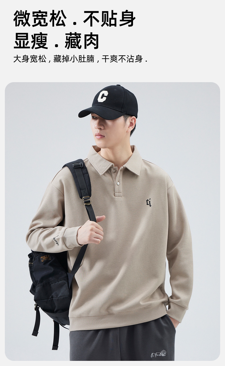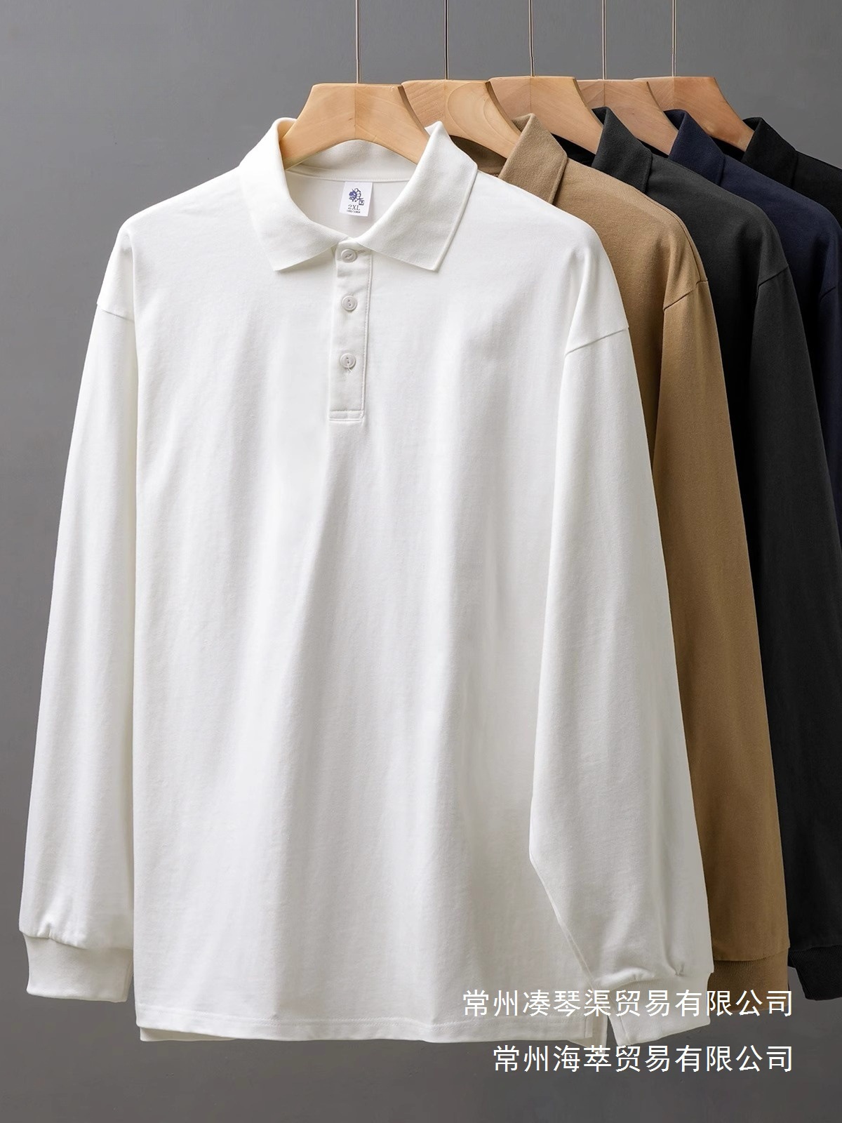 320G重磅纯棉POLO衫男长袖春秋季新款纯色打底衫休闲宽松翻领批发