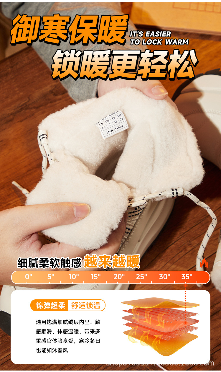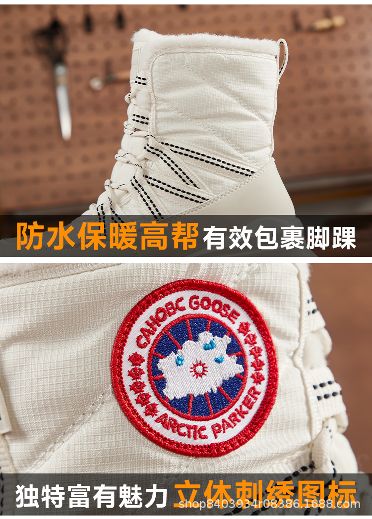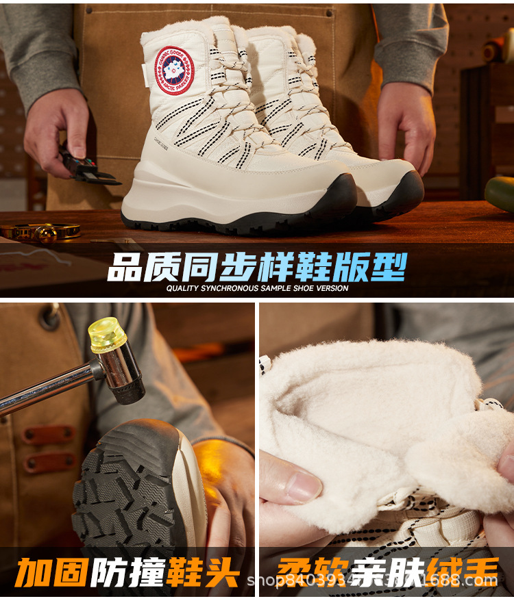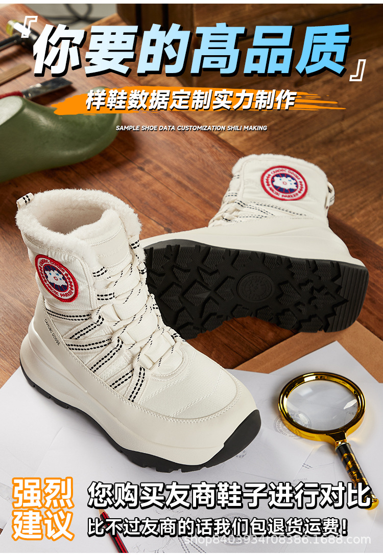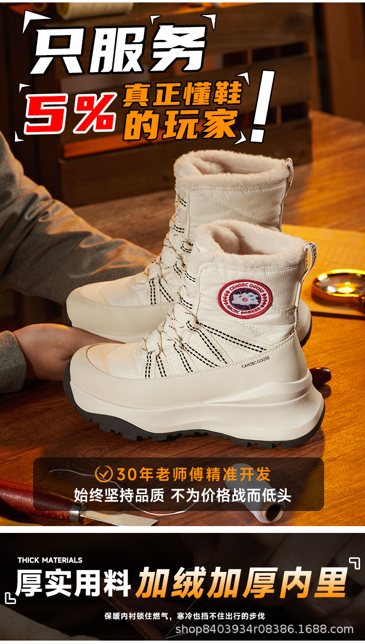 大鹅冬季情侣雪地靴加绒保暖户外徒步运动休闲靴东北雪乡旅游