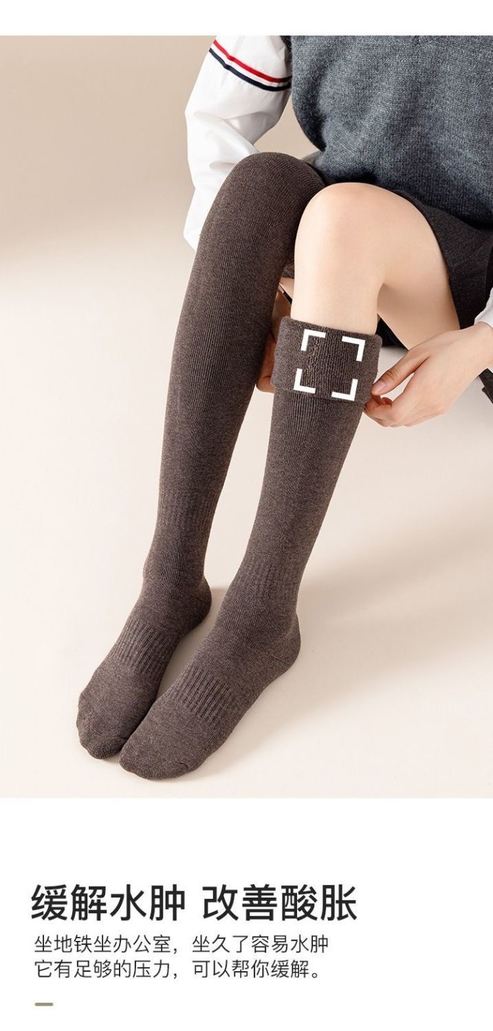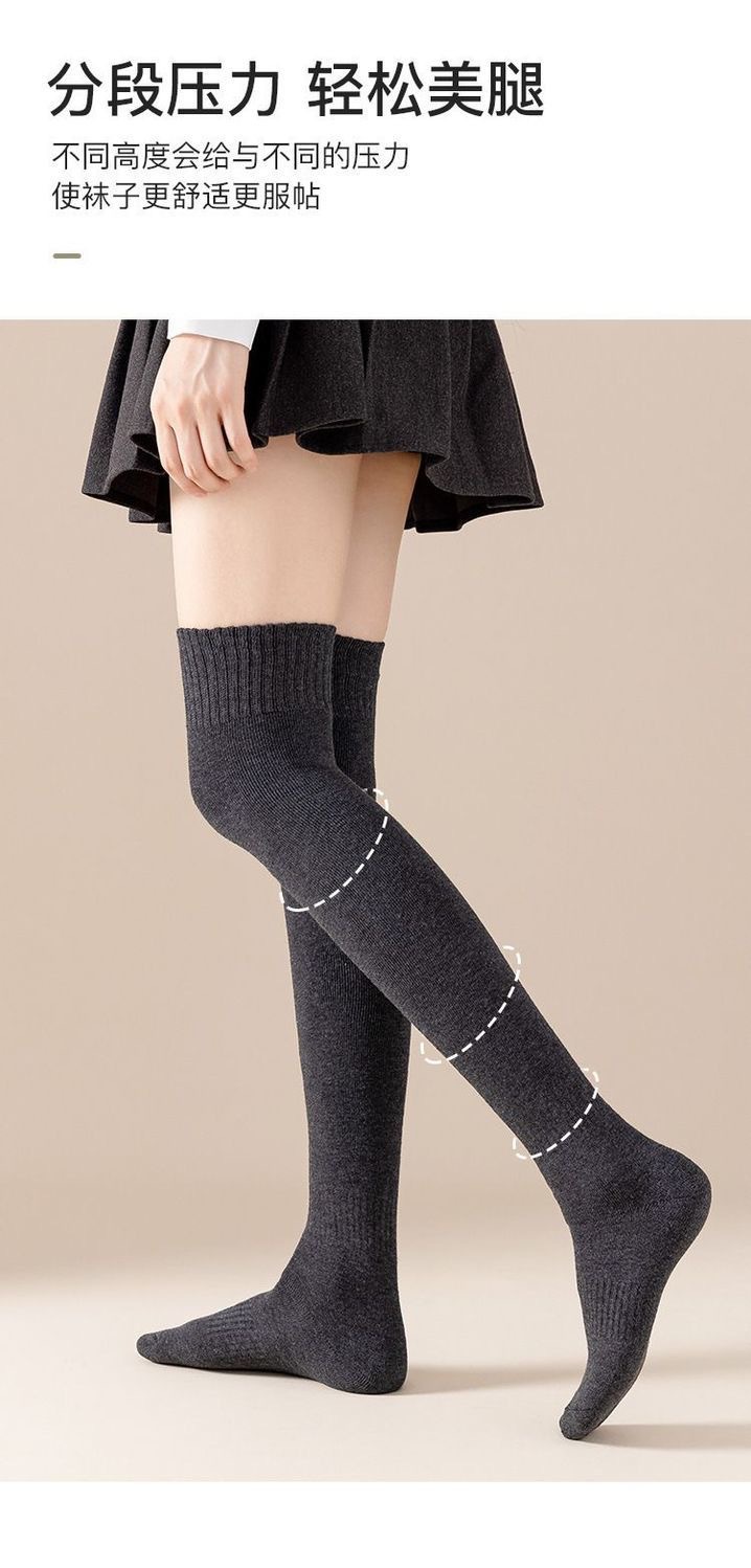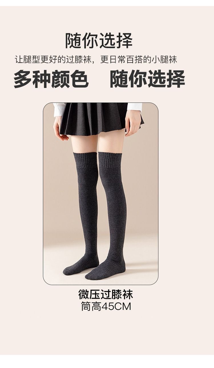 过膝袜秋冬保暖加绒加厚毛圈袜微压显瘦防滑纯色女生过膝JK长筒袜