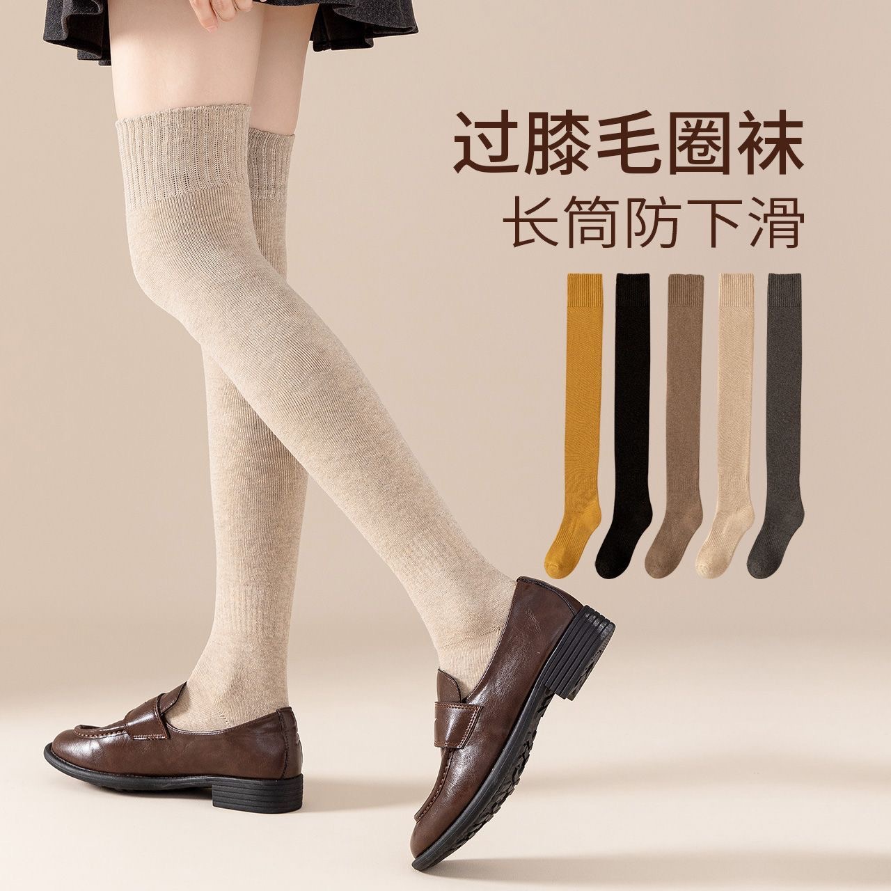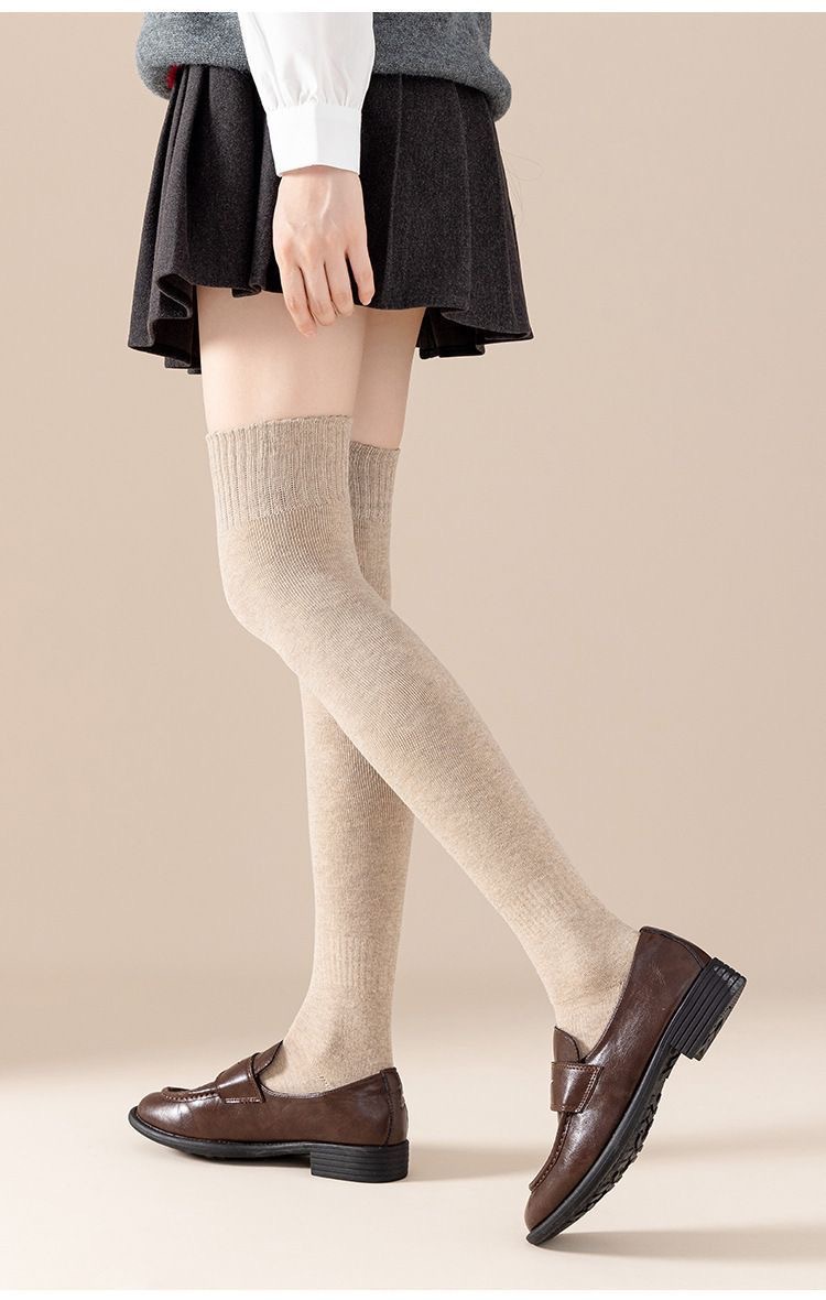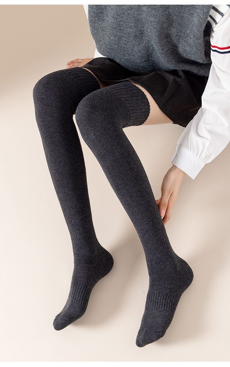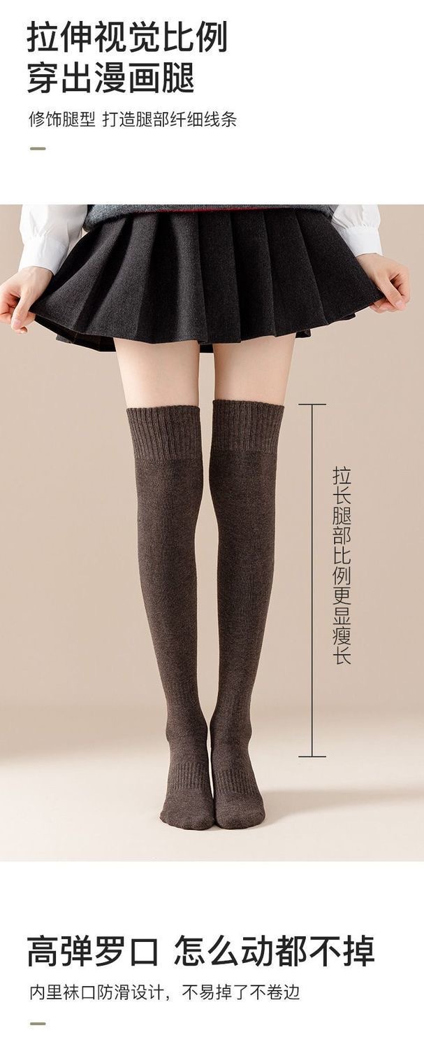 过膝袜秋冬保暖加绒加厚毛圈袜微压显瘦防滑纯色女生过膝JK长筒袜