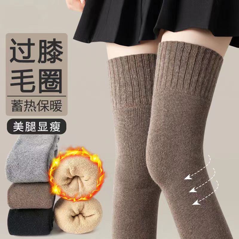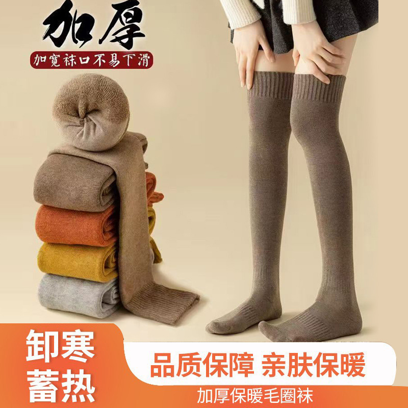 诸暨过膝袜子女秋冬长筒袜加绒加厚保暖大腿长袜毛圈长筒袜子批发