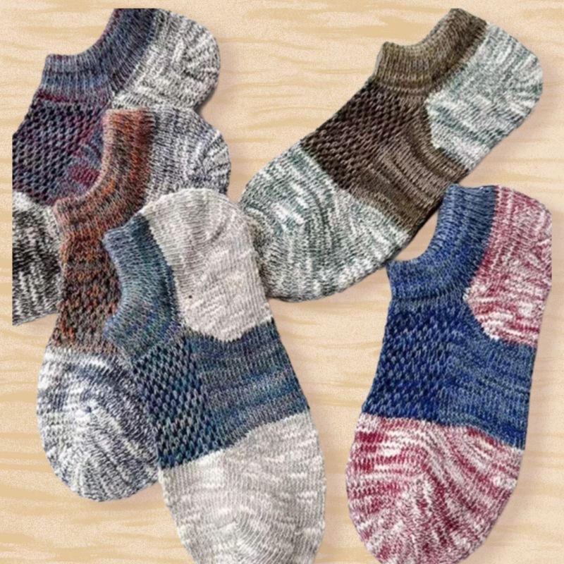 春と夏のメンズソックス太い糸のソックスカラーブロックメッシュ通気性メンズボートソックスローカット浅い口レトロエスニックスタイル