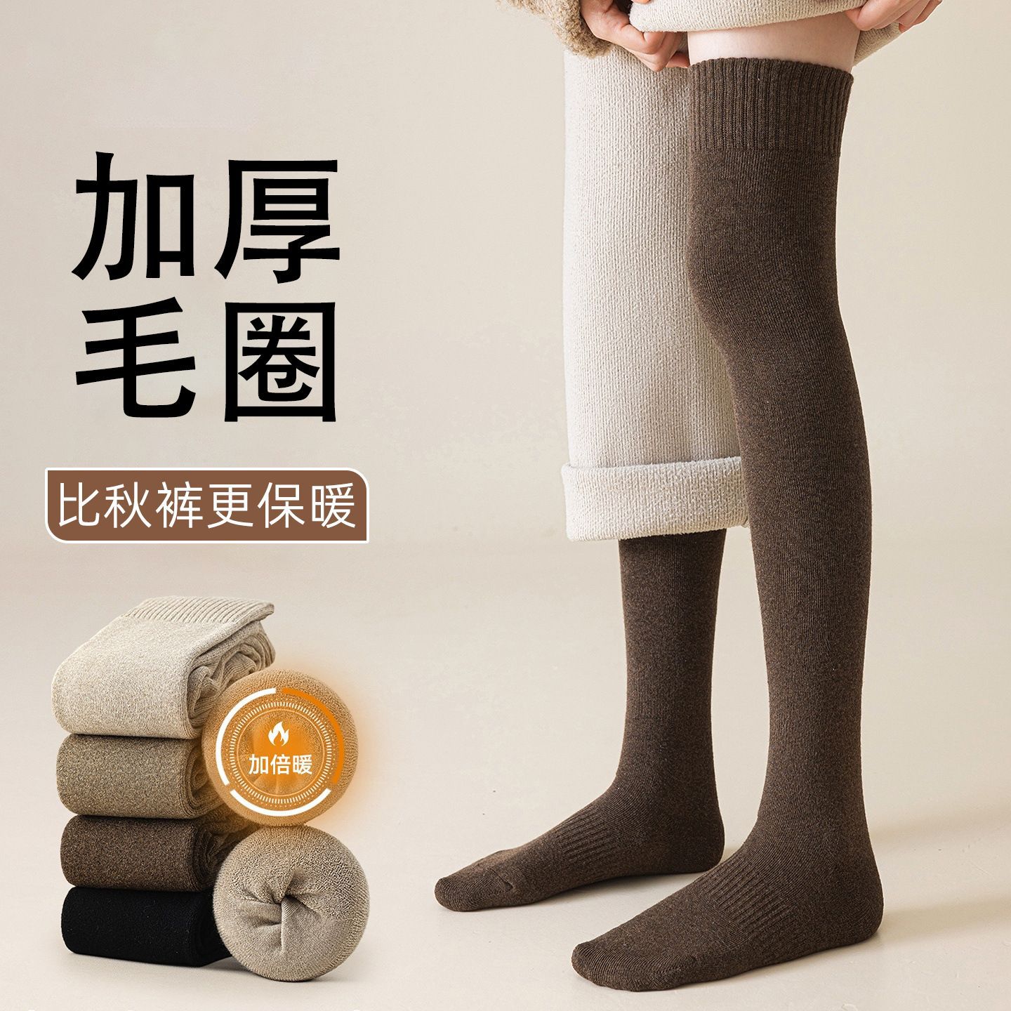秋冬季过膝女护膝膝盖加厚毛圈大腿加绒保暖长筒袜加长高筒厚袜子