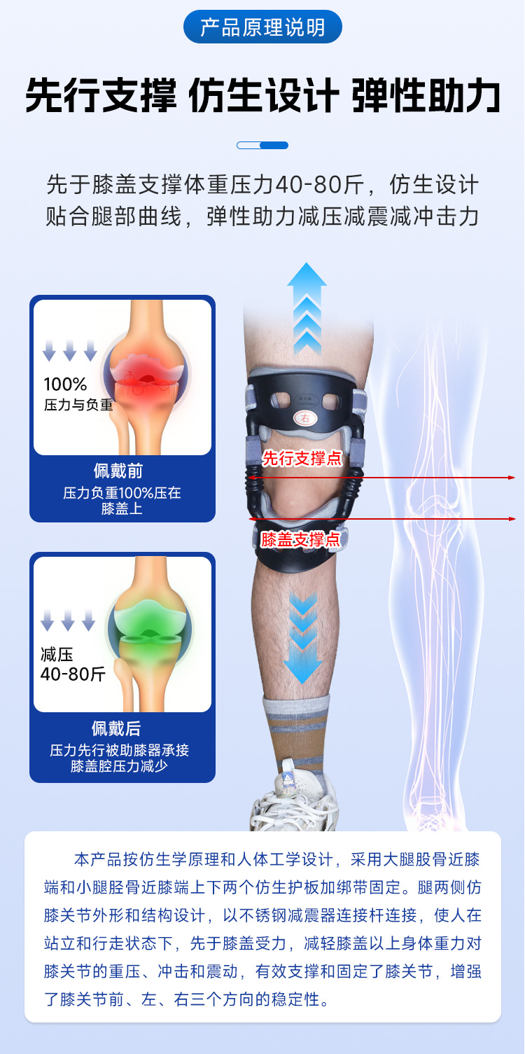 【工場卸売】中型膝装具、膝ブースター、高齢者用サポートブレース、歩行補助装置、外骨格