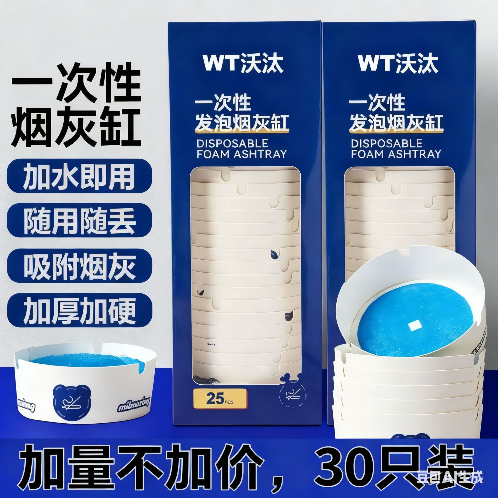 一次性烟灰缸自带灭烟沙高端空气清洁剂办公室吸附防飞灰便携家用