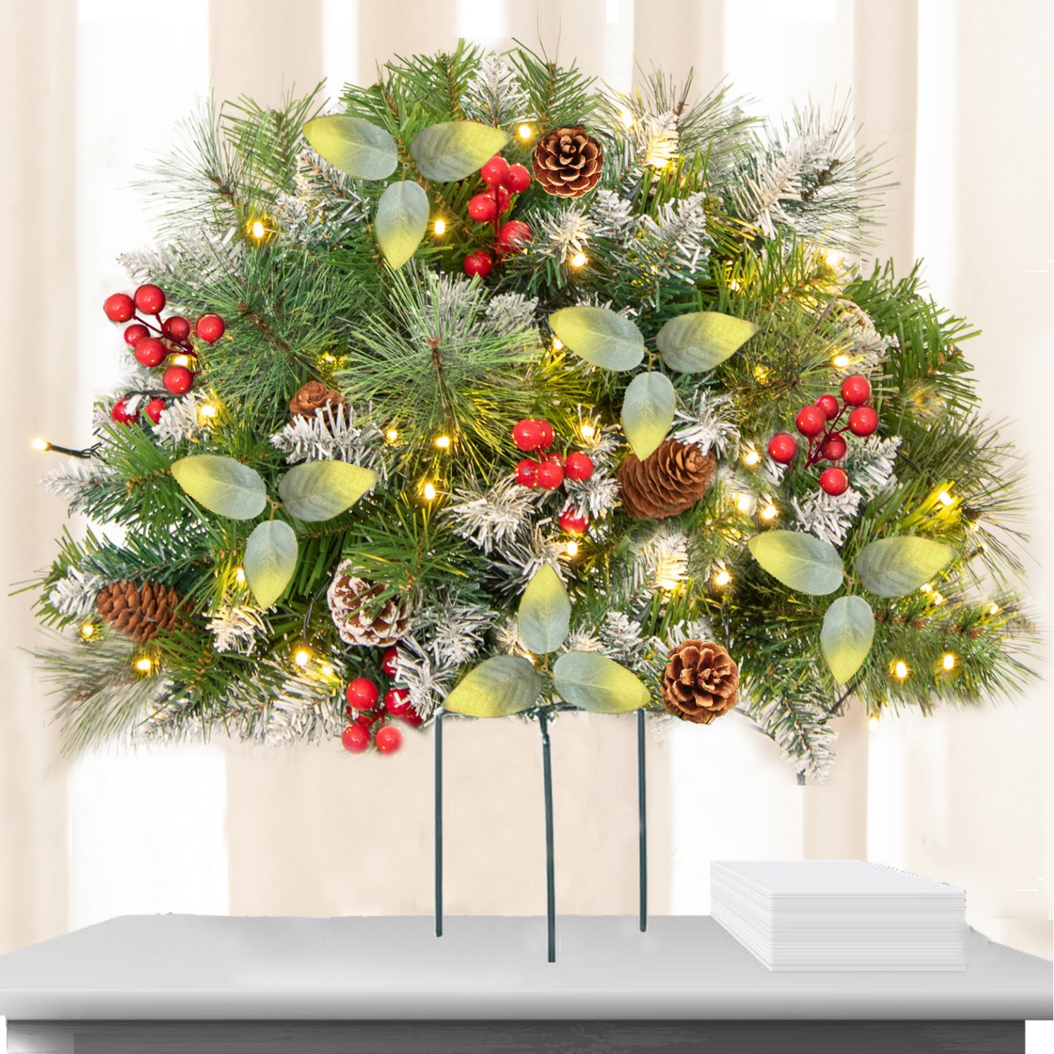 クロスボーダークリスマス花輪地挿し雪松紅果発光生け花シミュレーション緑植創意クリスマス装飾