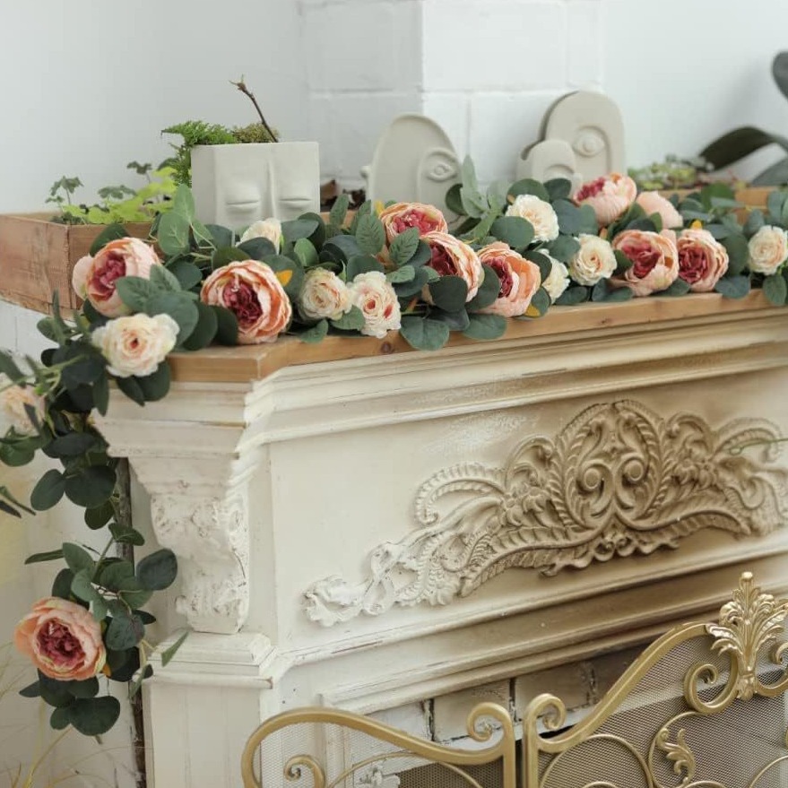 模造お金叶ユーカリ花リング绢布牡丹ローズ花长い籐结婚式アーチテーブル壁背景装饰