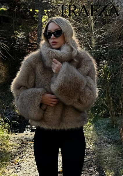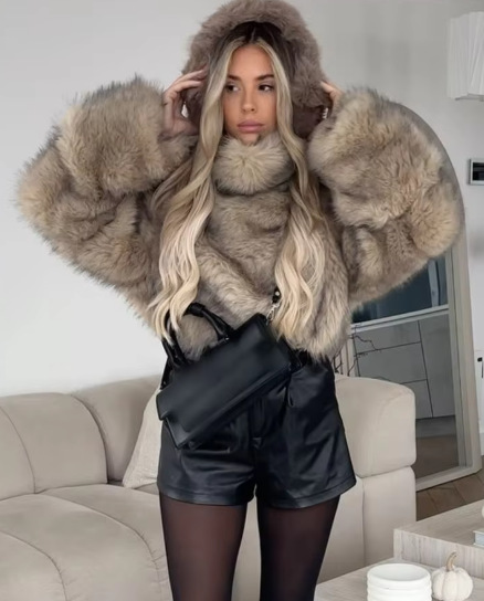 ZA亚马逊爆款跨境外贸欧美风气质女装街头时尚人造皮草效果外套
