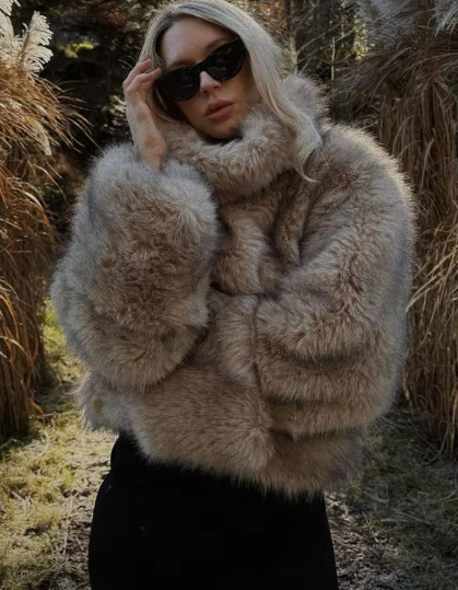 外贸批发冬季复古仿皮草外套短款夹克女士毛毛上衣A89