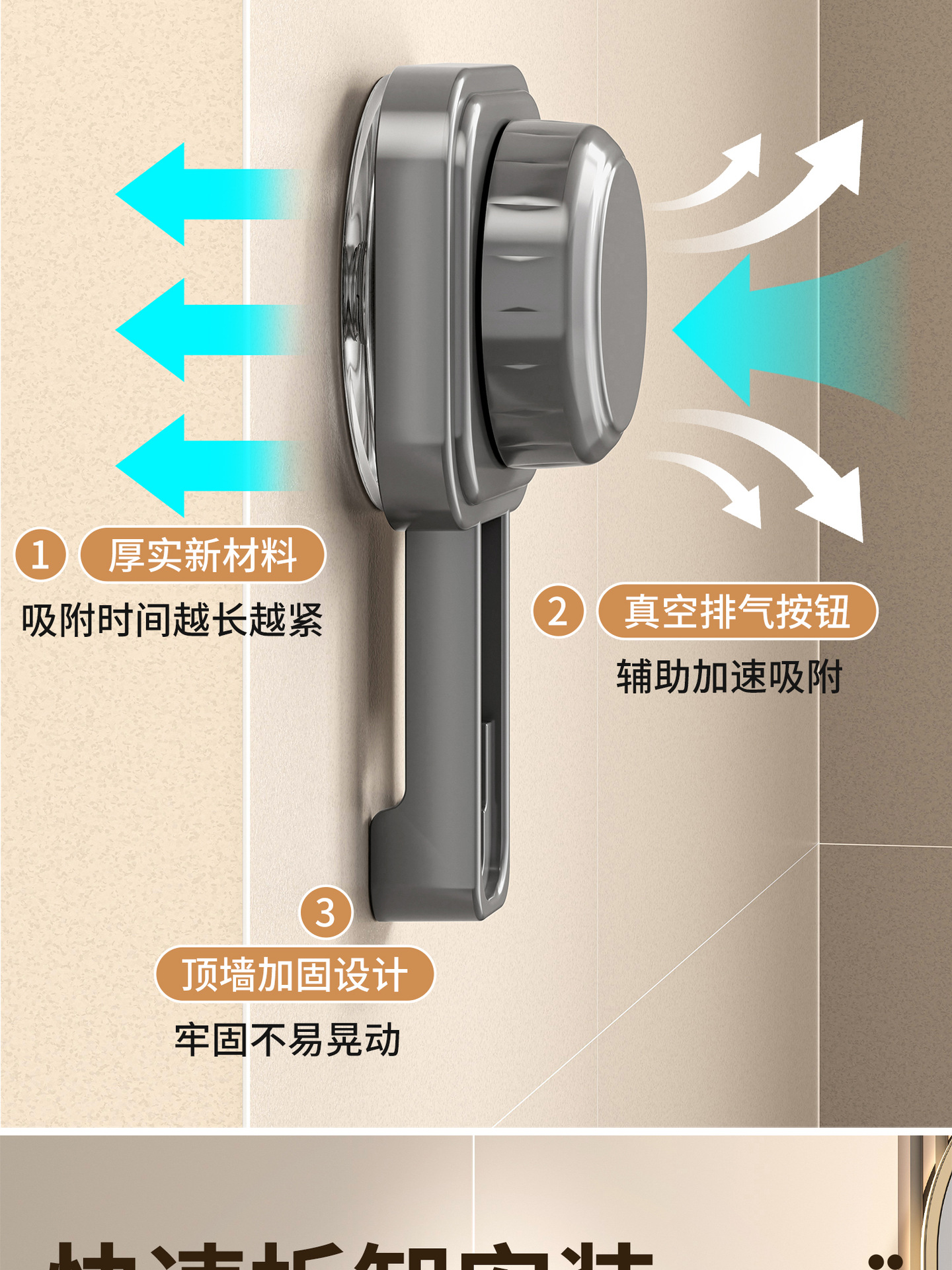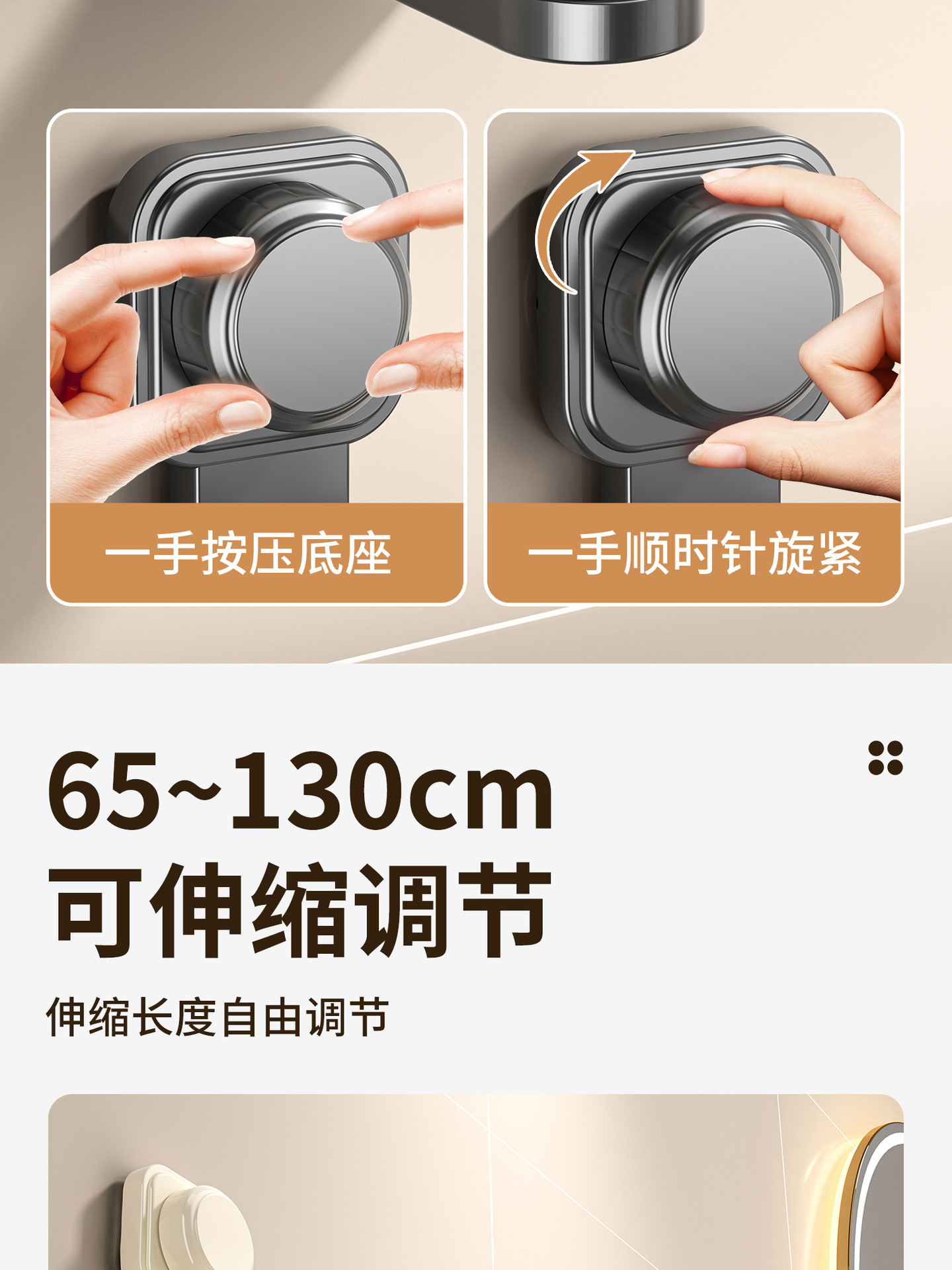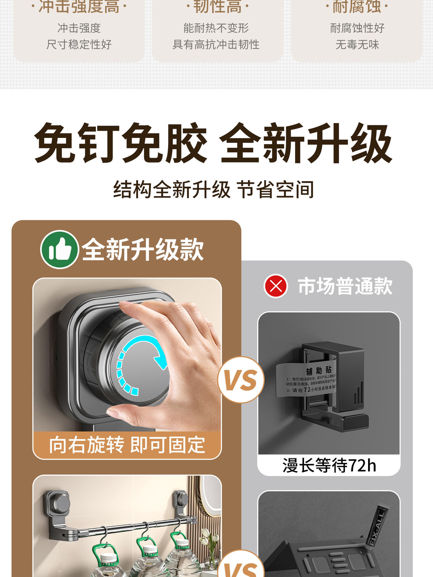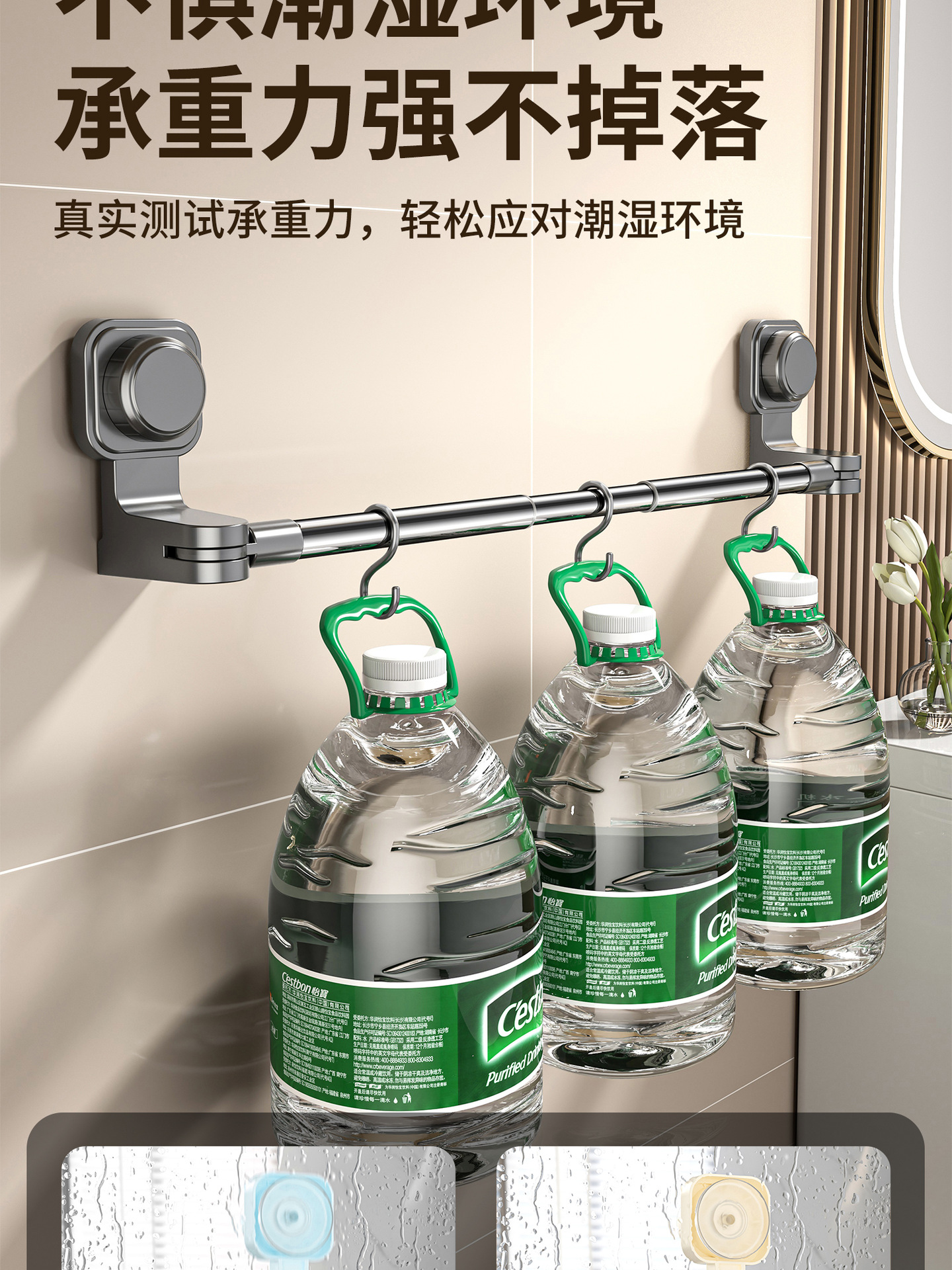 百悍吸盘毛巾架挂杆卫生间免打孔置物架伸缩毛巾杆浴室厕所收纳架